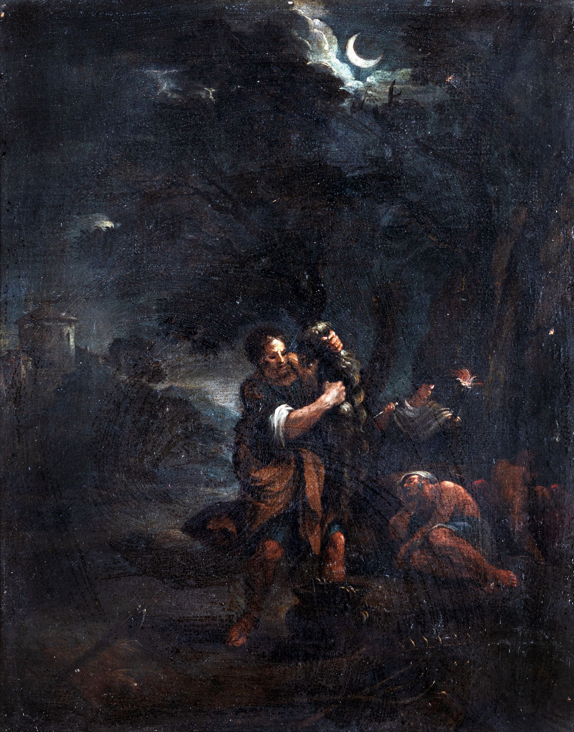 La tela con la storia di San Pietro è da collegare alla produzione di notturni, di qualità eccelsa, prodotta dal cremonese di nascita ma bolognese d'adozione Donato Creti.