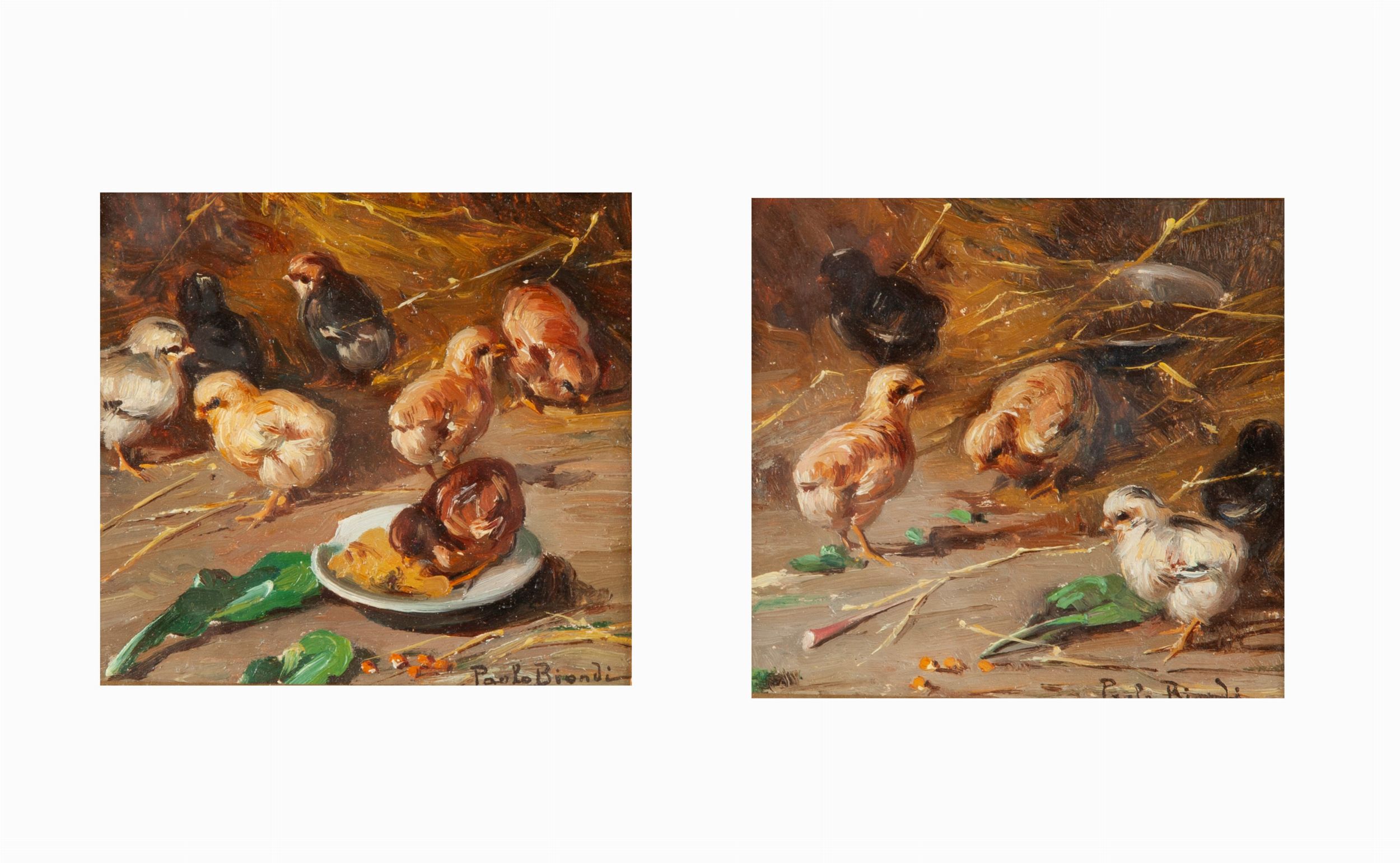 olio su tavoletta, cm 10x10 ciascuno - in cornice cm 34,5x22