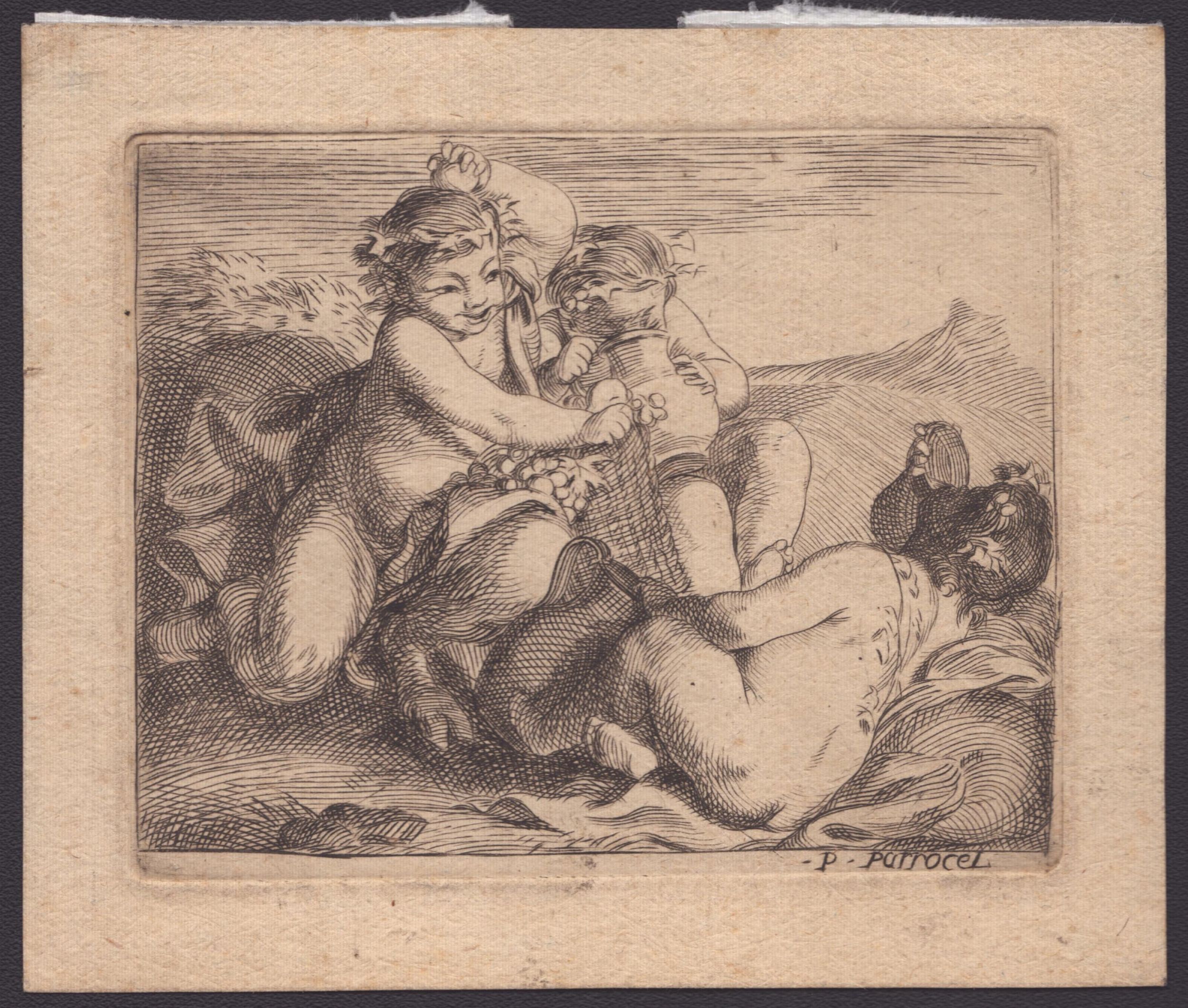 Acquaforte, 75 x 95 mm (lastra), 98 x 116 mm (foglio). Bella, nitida impressione su carta vergata. Foglio in ottimo stato di conservazione salvo dei residui cartacei al verso.
