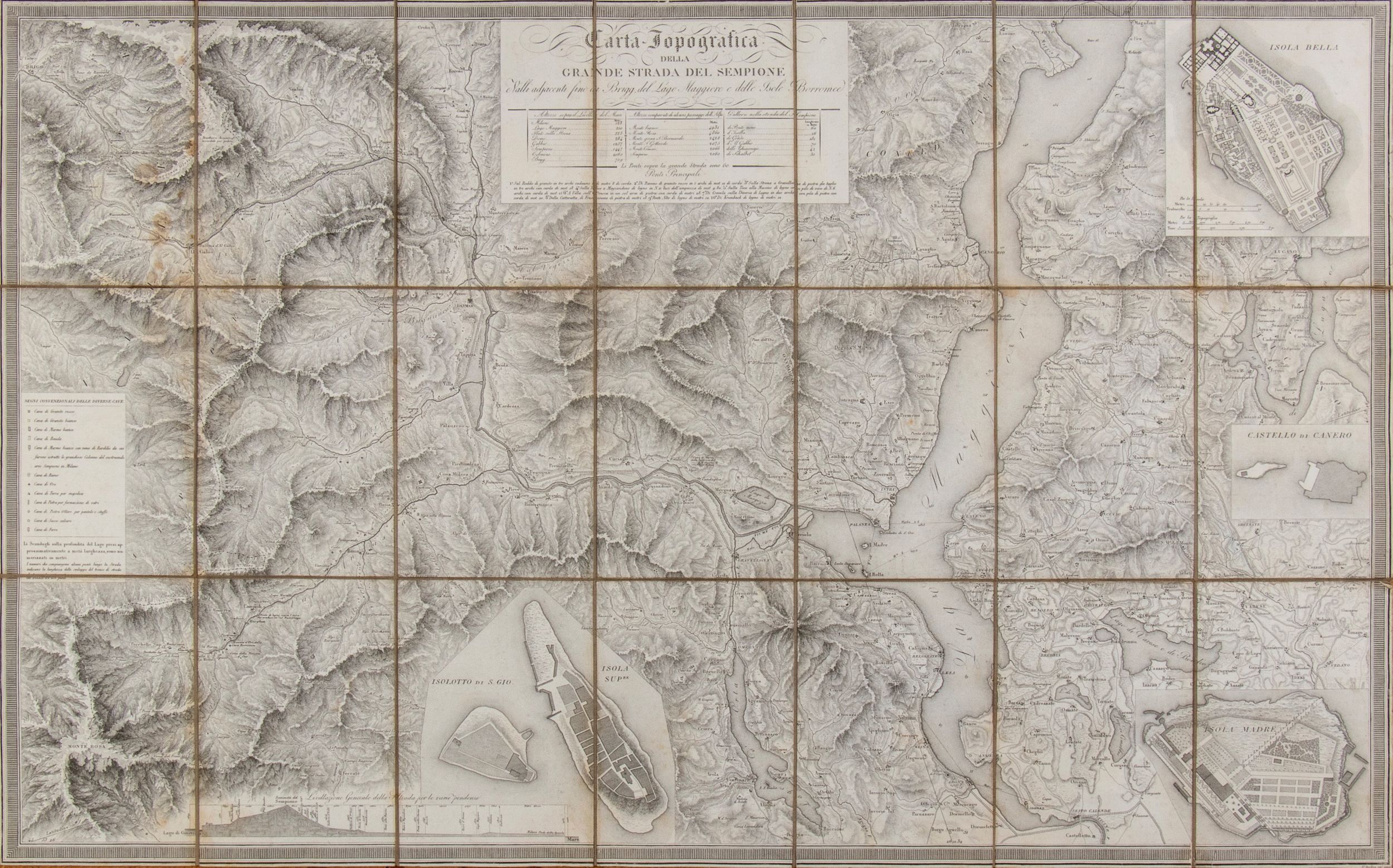 Litografia e acquaforte, 636 x 1110 mm. Grande mappa pieghevole (in 21 parti), intelata. In ottimo stato di conservazione.