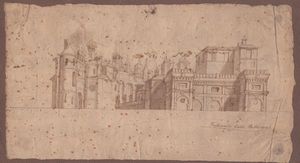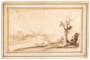 Inchiostro su carta vergata, controfondato su supporto antico. 250 x 428 mm (disegno), 337 x 517 mm (supporto). [..]