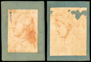 artista attivo a Roma, seconda metà XVI secolo Lotto di due disegni. Sanguigna su carta vergata. Entrambi controfondati [..]