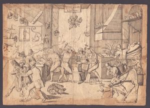 scuola romana, XVIII secolo Inchiostro su carta vergata sottile. 196 x 132 mm Incollato in otto punti su foglio [..]
