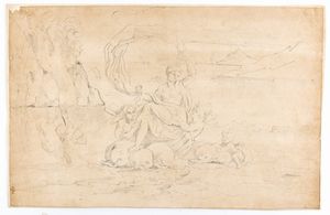 scuola emiliana, XVII secolo Sanguigna e acquarello su carta vergata sottile con filigrana. 318 x 217 mm  [..]