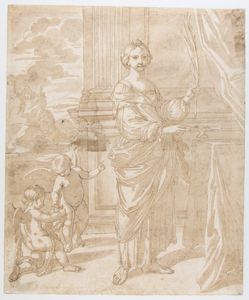 Roma, XVII secolo Sanguigna, matita nera e biacca su carta vergata azzurra. 166 x 137 mm Nota manoscritta [..]
