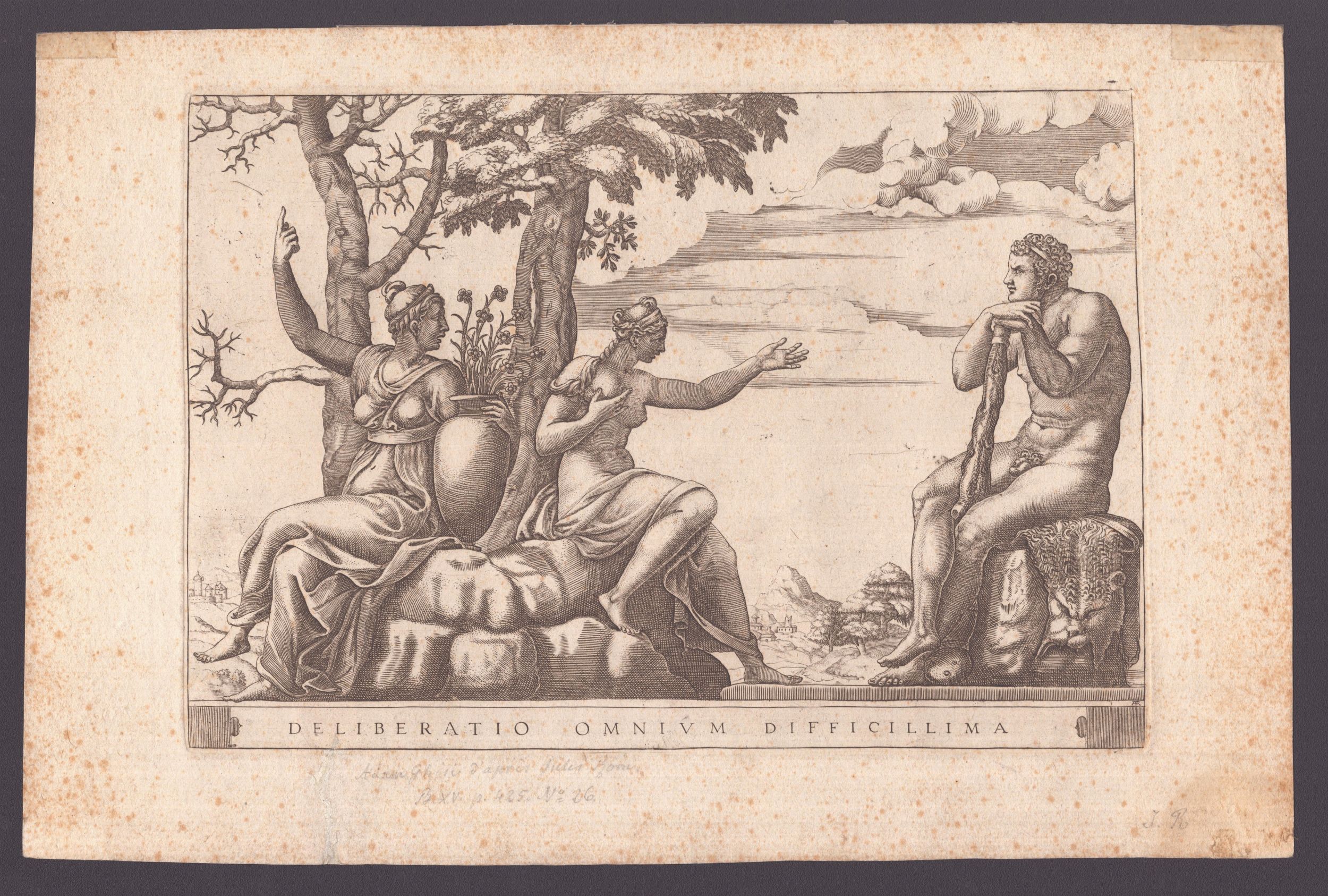 da Giulio Romano. Bulino, 197 x 284 mm (lastra), 247 x 370 mm (foglio). Unico stato. Bartsch XV.26, Bellini 20. Tiratura posteriore.