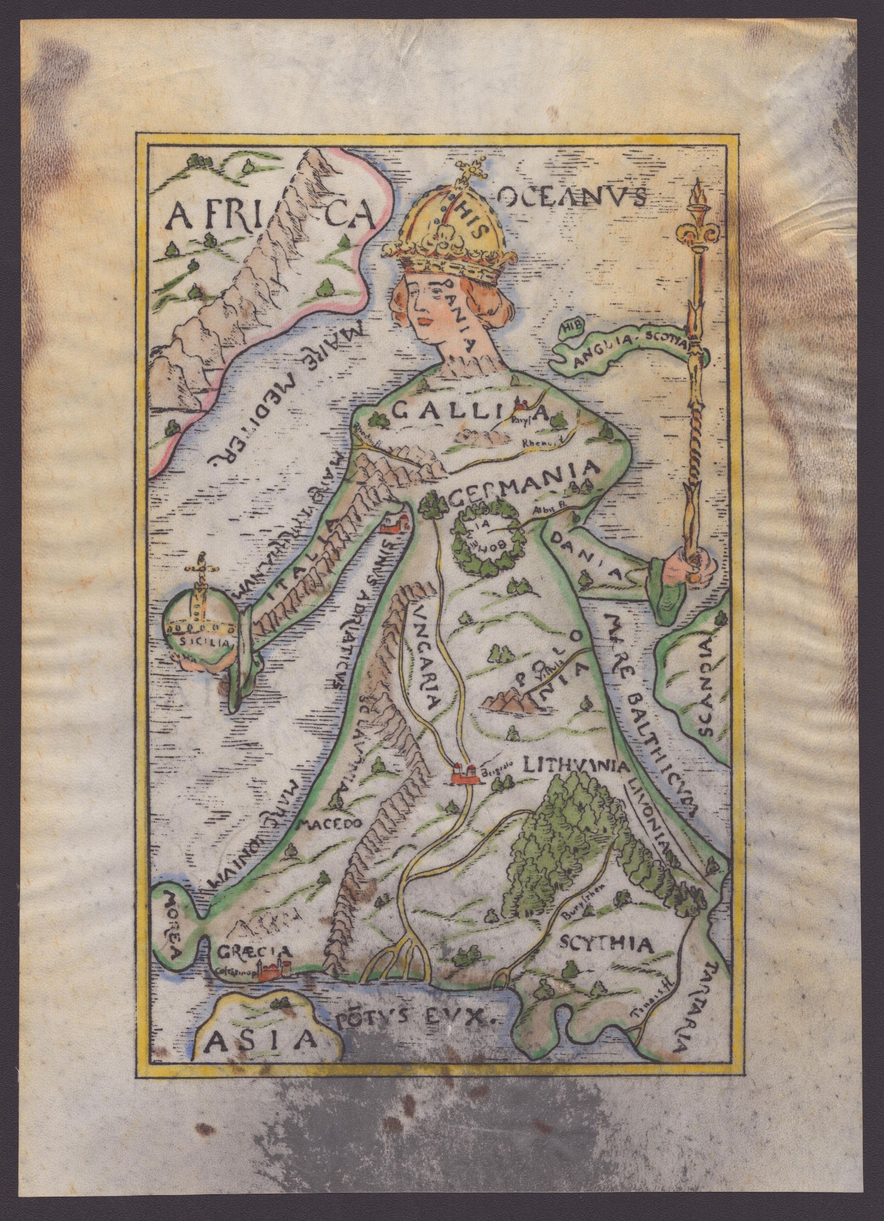 Acquaforte su pergamena, 302 x 215 mm. Colorato a mano. In buono stato di conservazione salvo delle macchie sui margini.