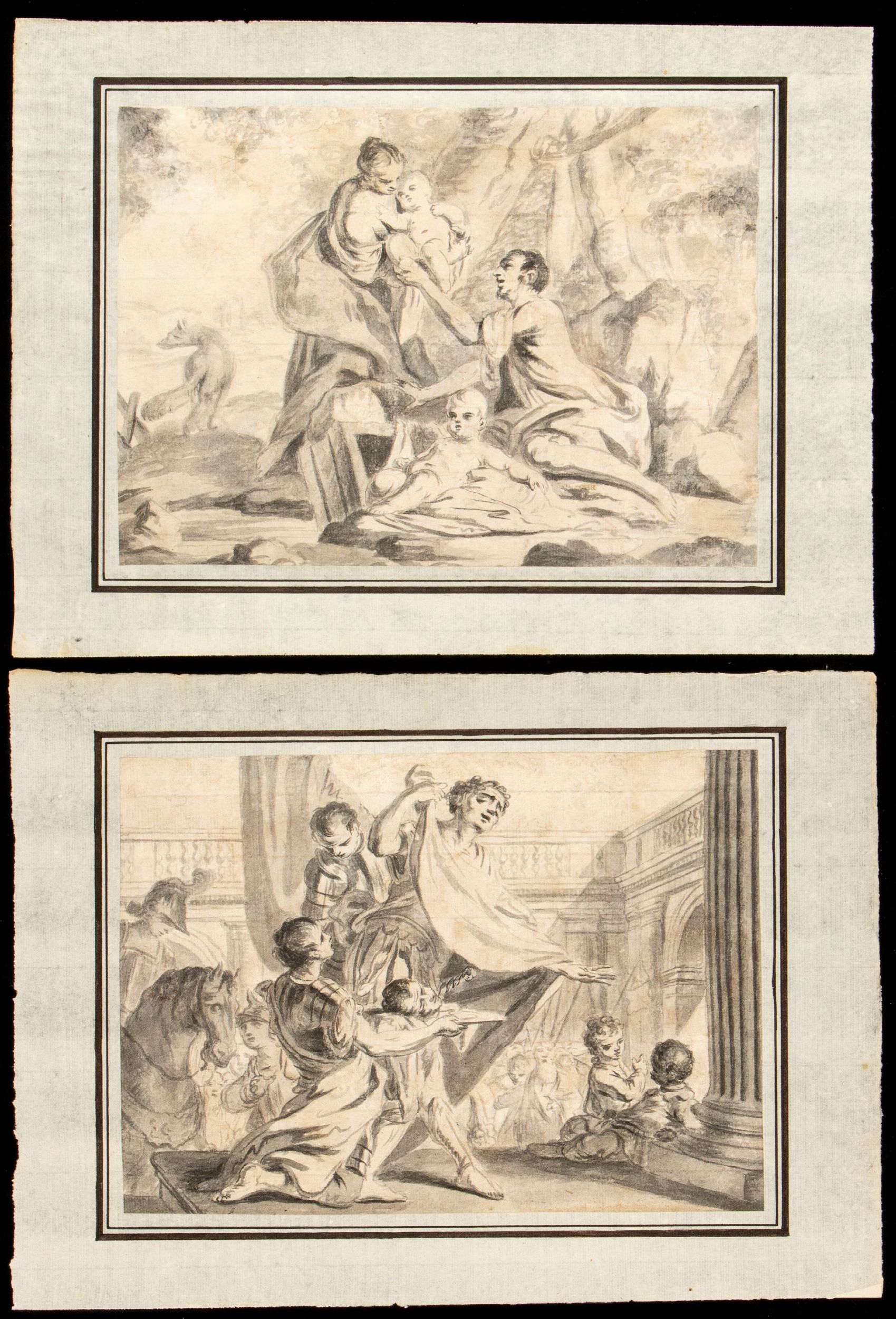 Lotto di due disegni. Acquarello su carta vergata. Controfondati su due fogli di carta vergata sottile. 157 x 220 mm ca. (cad. disegno) 215 x 295 mm (cad. foglio).