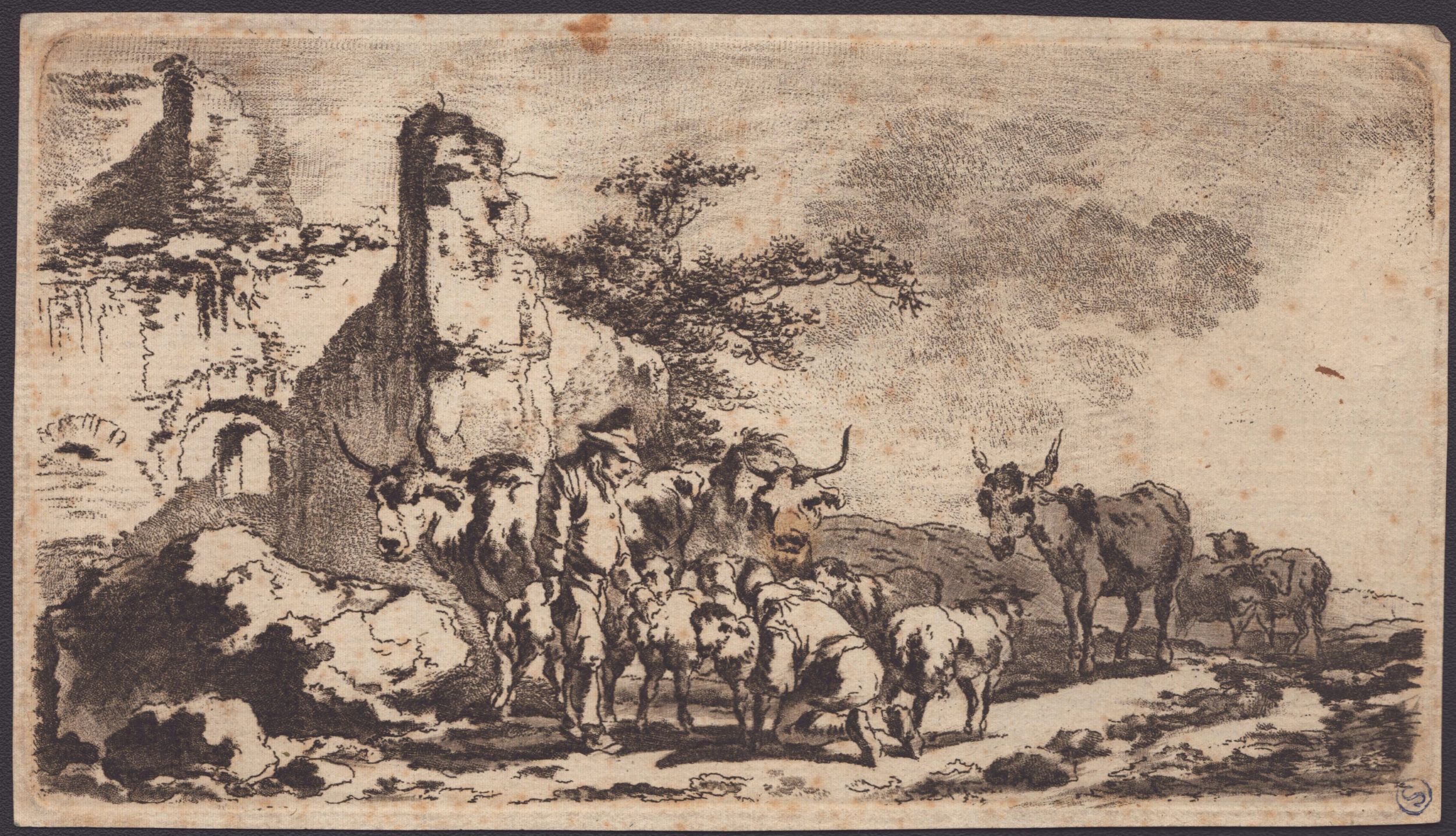 Acquatinta, 101 x 178 mm. Timbro di collezionista (Lugt 3578?) in basso a destra.Bellissima impressione su carta vergata. Esemplare con piccoli margini di circa 2 mm.Foglio in ottimo stato salvo segni di fioritura.