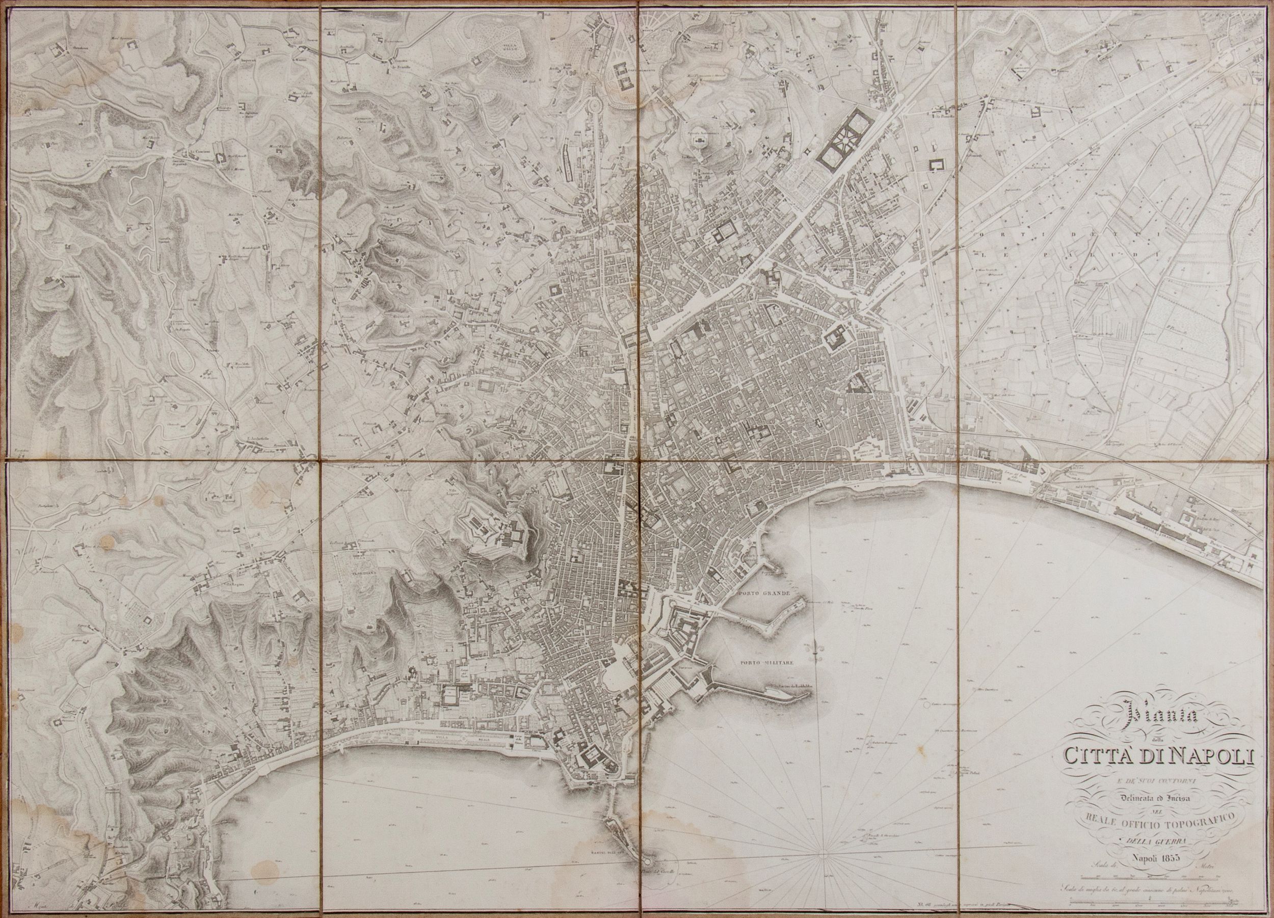 Litografia e bulino, 693 x 950 mm. Grande mappa pieghevole in 8 parti, intelata. In ottimo stato di conservazione.