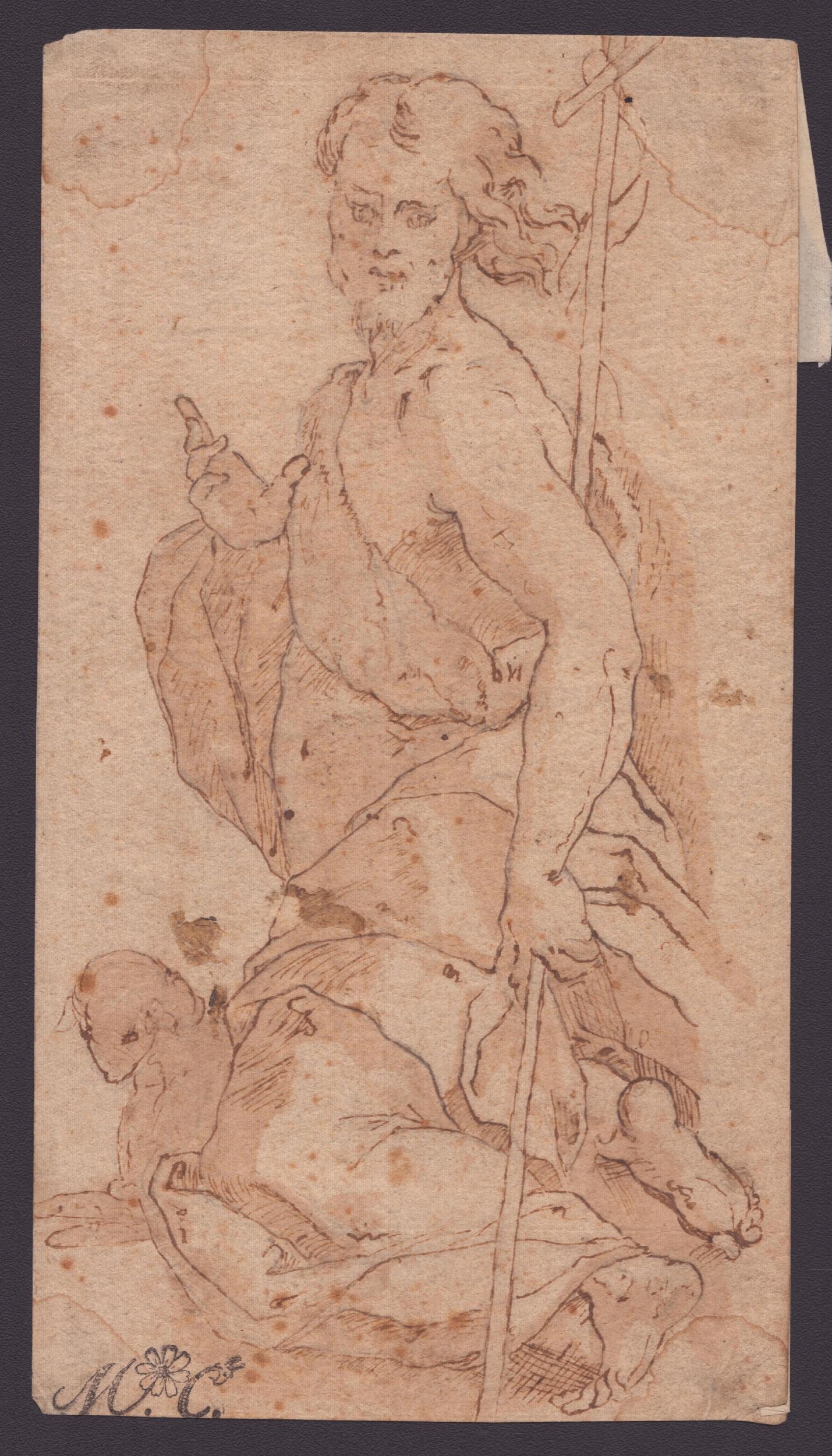 Matita, inchiostro e acquerello su carta vergellata, 218 x 120 mm.Il disegno reca nell'angolo inferiore sinistro il timbro da collezione della Contessa Margherita Cavranzola (Lugt 3446) e al retro un altro timbro non identificato.