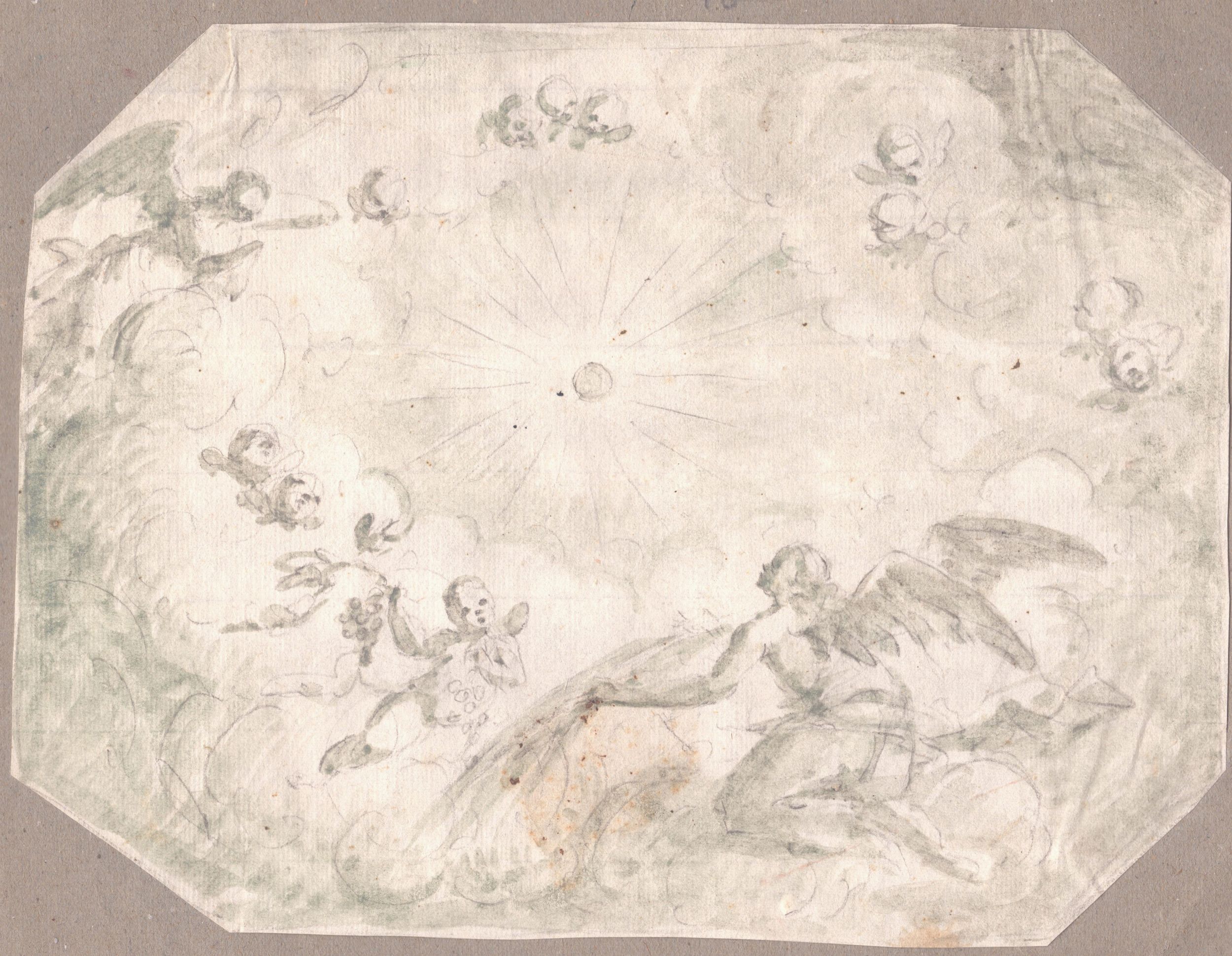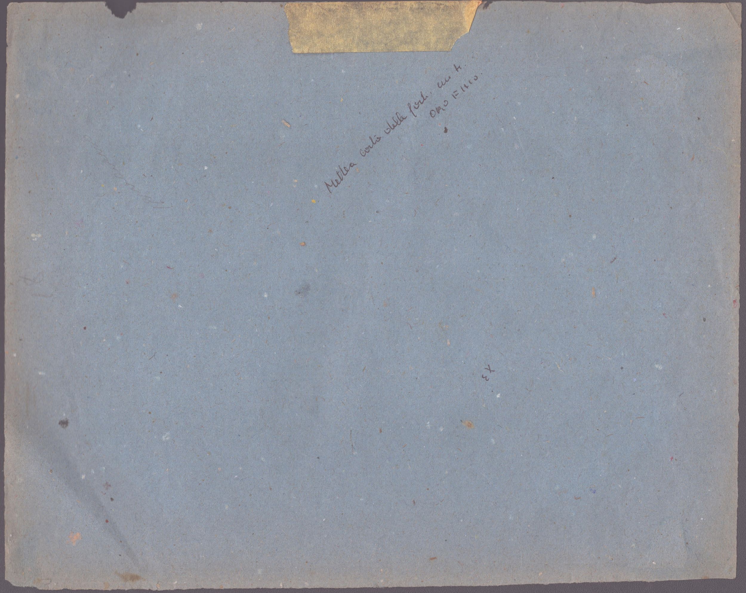 Matita e inchiostro acquerellato su carta vergellata, 173 x 228 mm.Incollato lungo i bordi destro e sinistro su un foglio di carta azzurra.