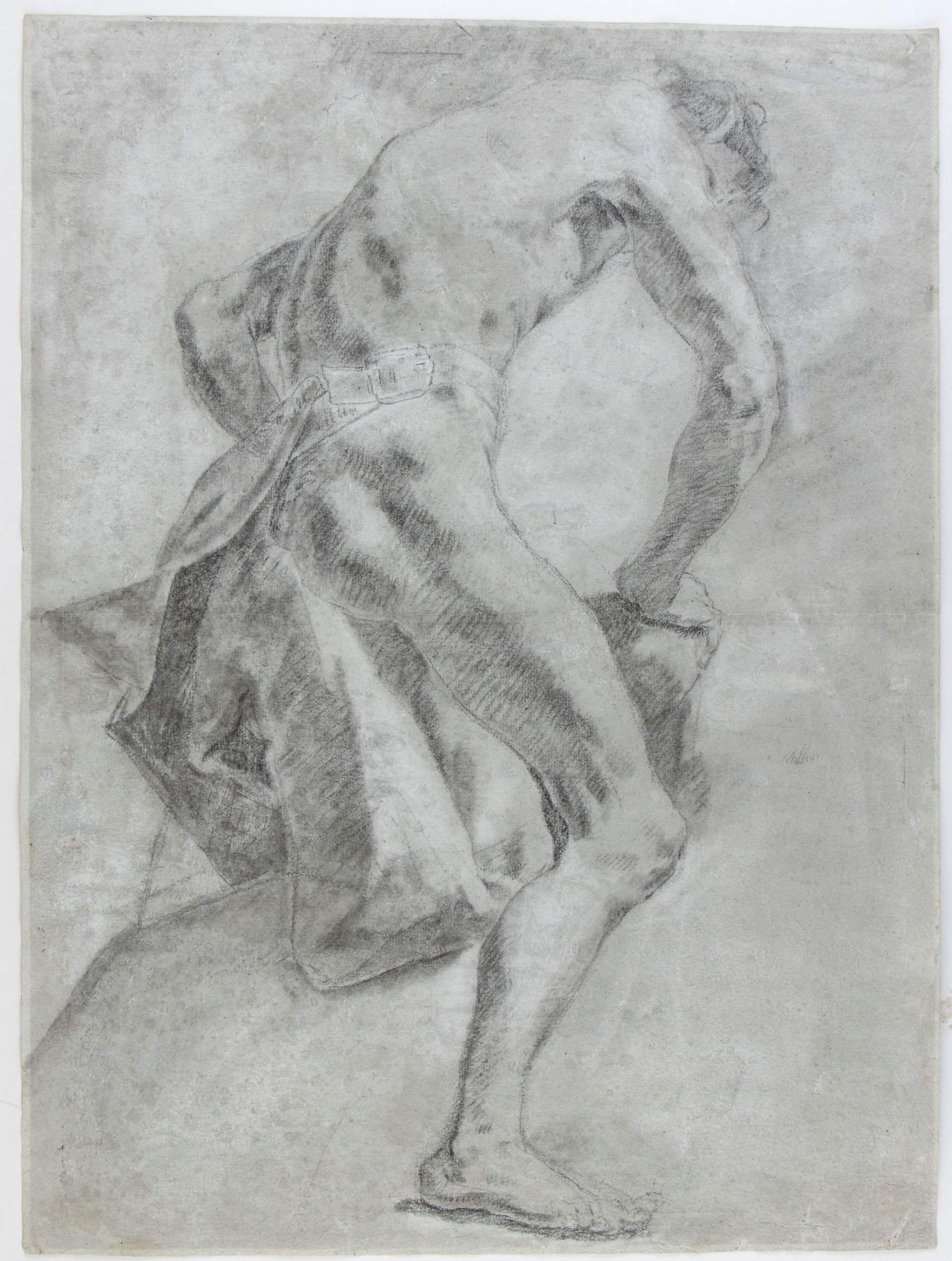 Matita nera e carboncino su carta vergata azzurra. 580 x 432 mm