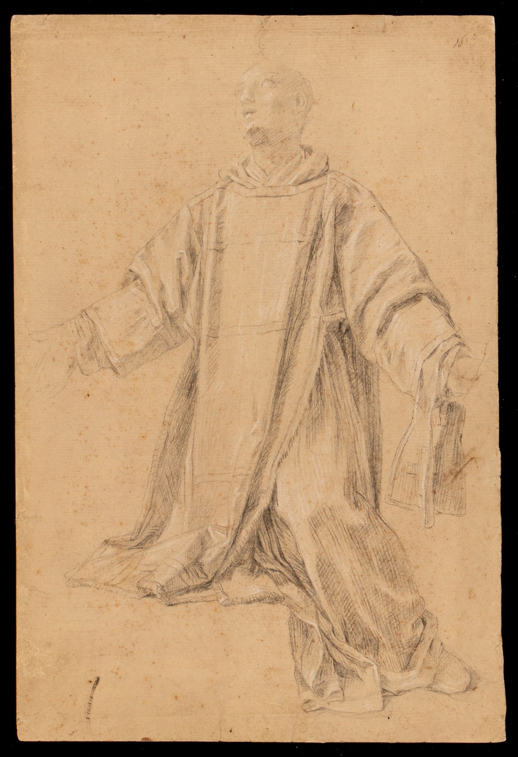 artista napoletano, XVIII secolo Matita nera e bianca su carta vergata con filigrana (iniziali P M entro un cerchio). 316 x 244 mm.