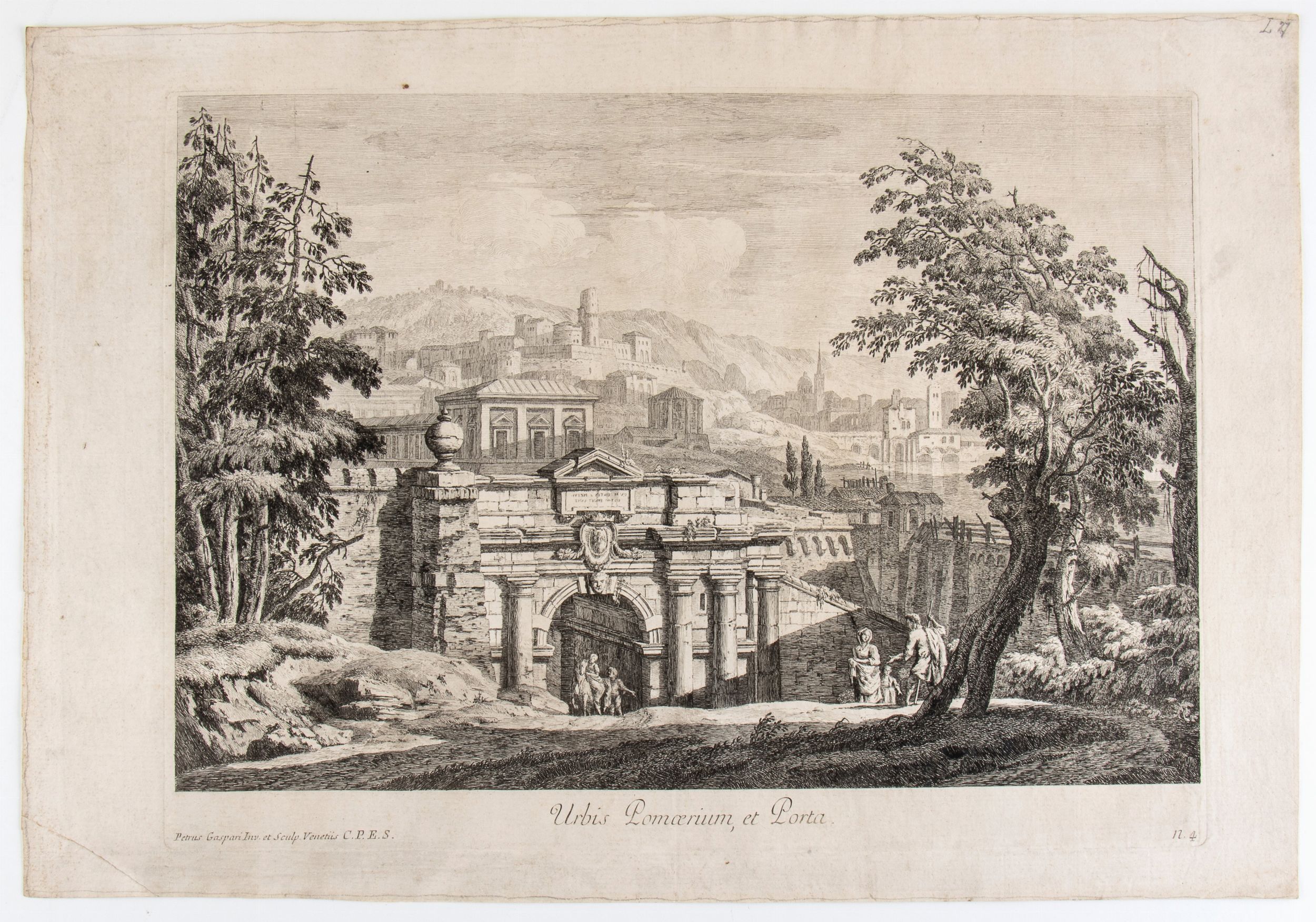 Acquaforte, 301 x 410 mm (lastra), 350 x 507 mm (foglio). Bellissima, fresca impressione su carta vergata con doppia filigrana. Foglio in ottimo stato di conservazione, leggermente ossidato, con traccia di una piega centrale poco visibile.