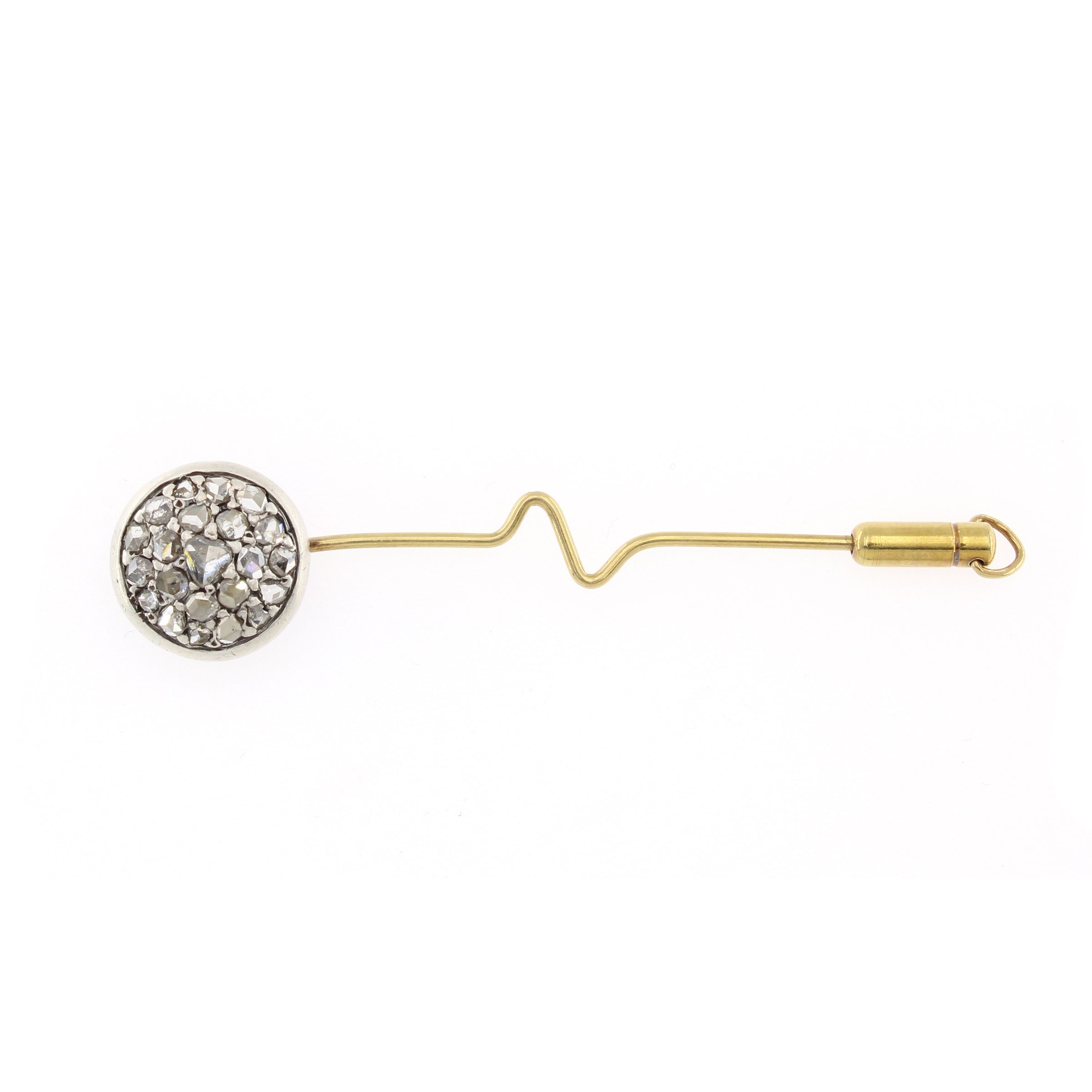 Antico spillone in oro giallo 18kt e argento con rose di diamante