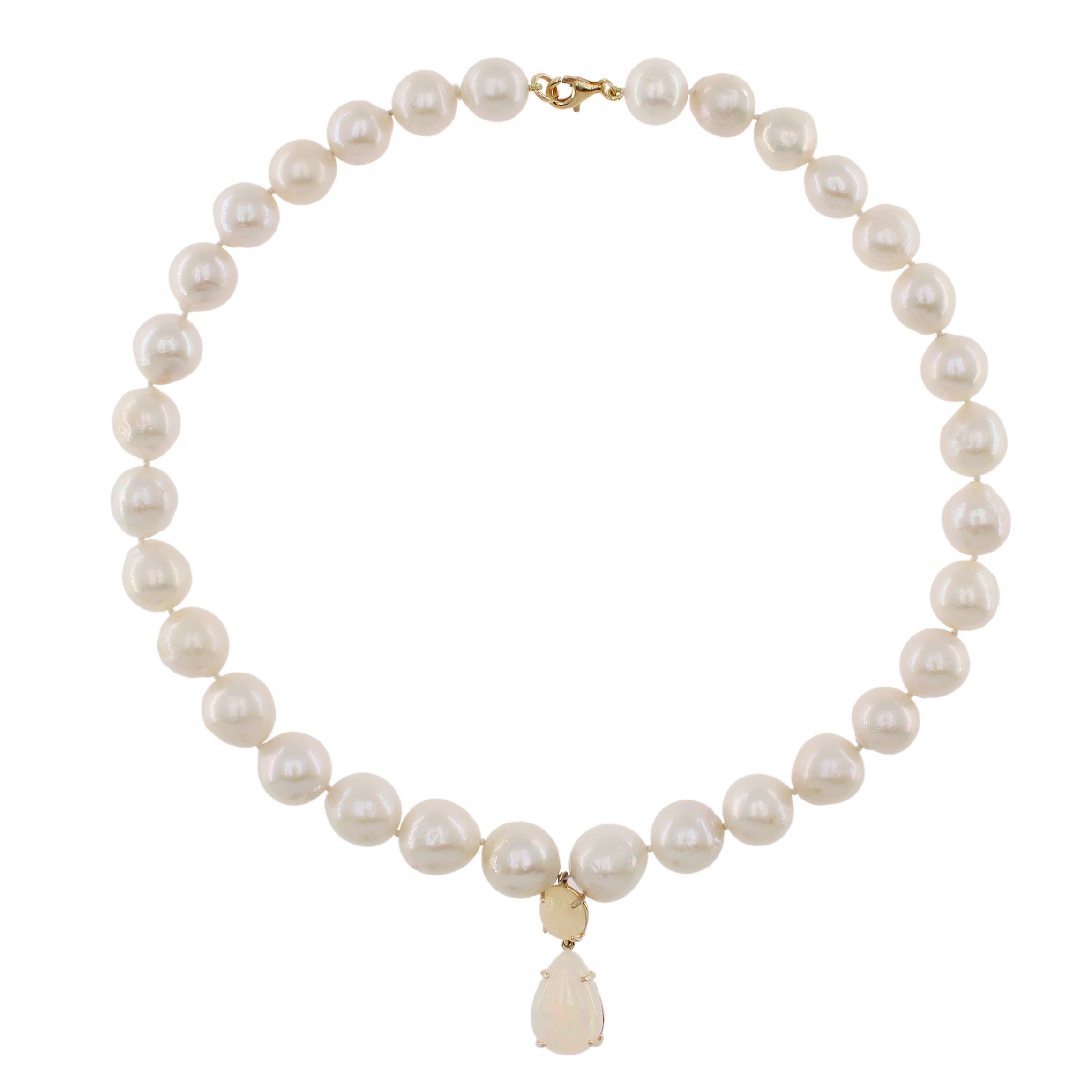 Collana ad un filo di perle barocche con pendente in opale arlecchino a goccia