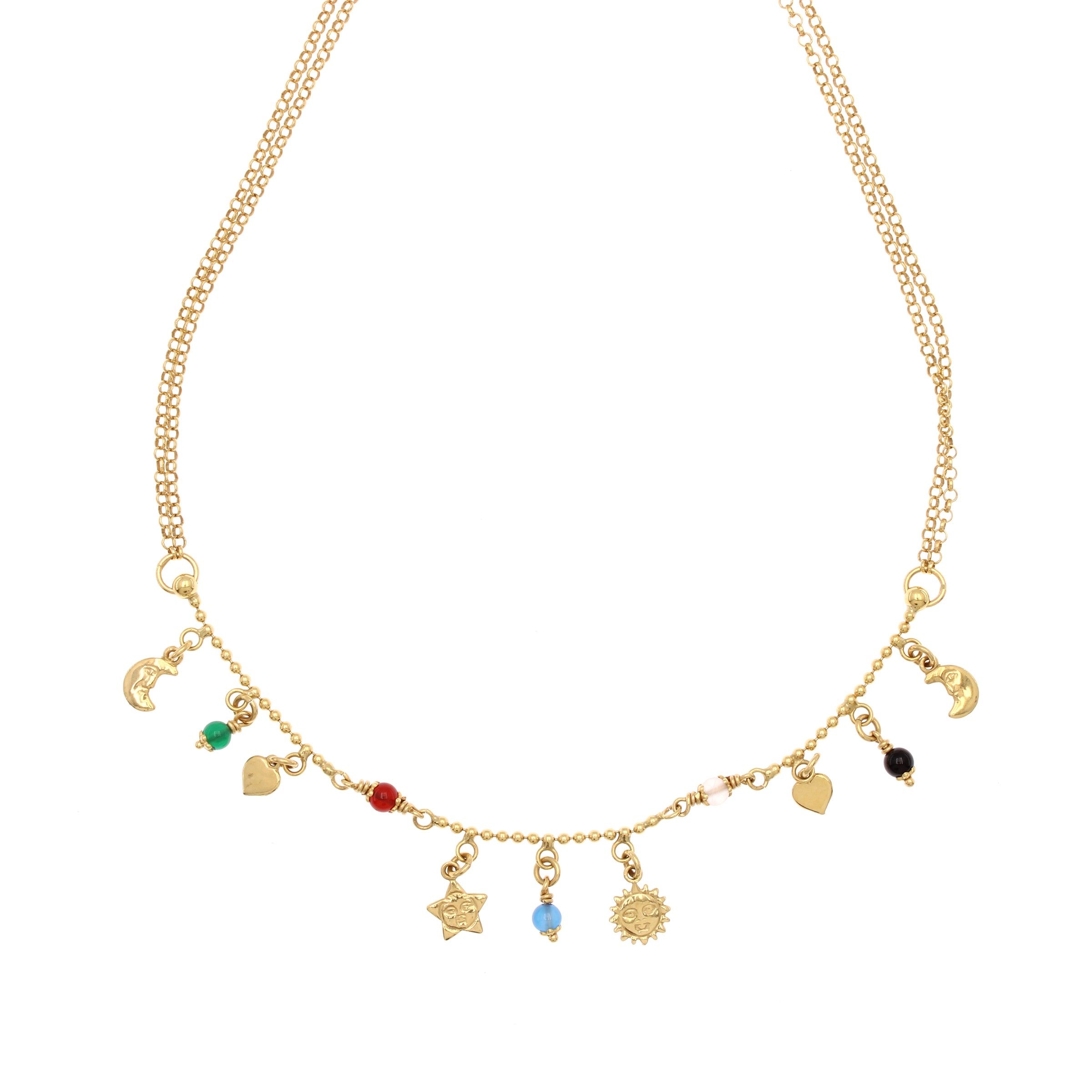 Collana in oro giallo 18kt con charms pendenti in oro e pietre