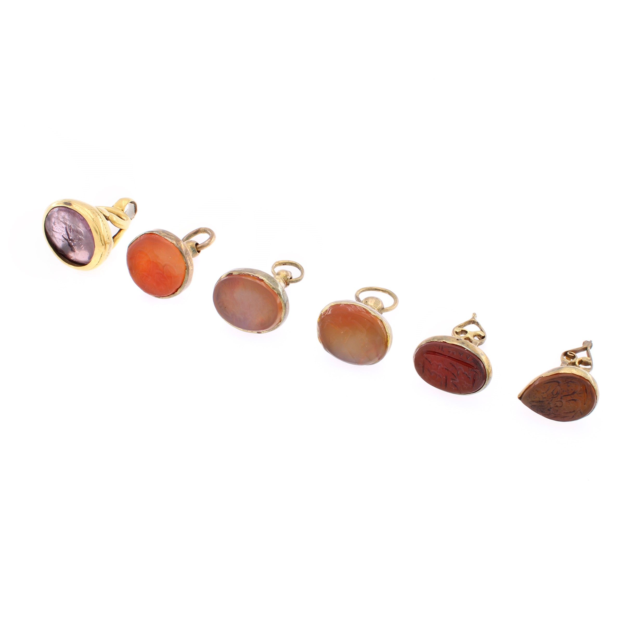 Gruppo di sei antichi sigilli in oro basso o princisbecco