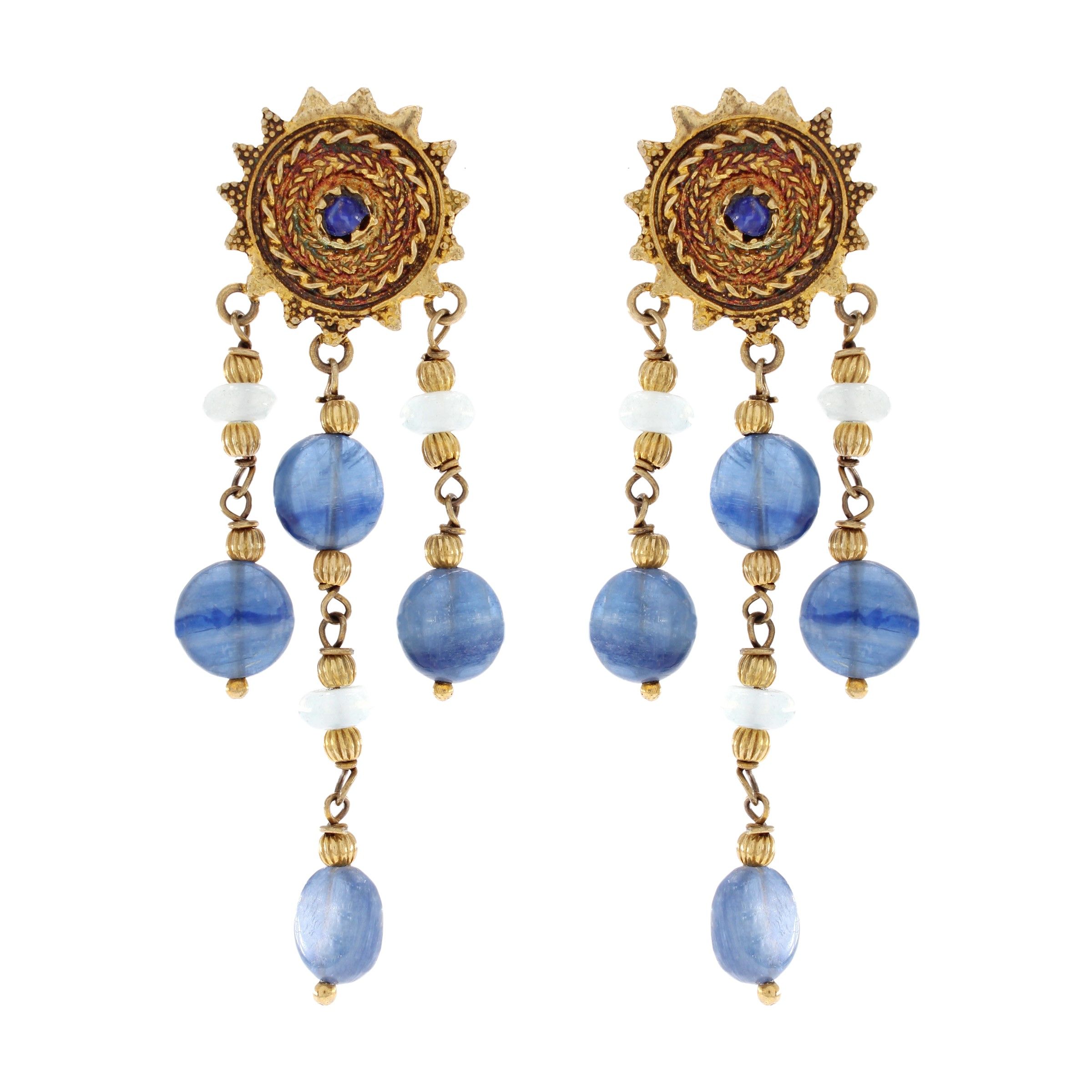Orecchini bijou pendenti in argento dorato e cianite