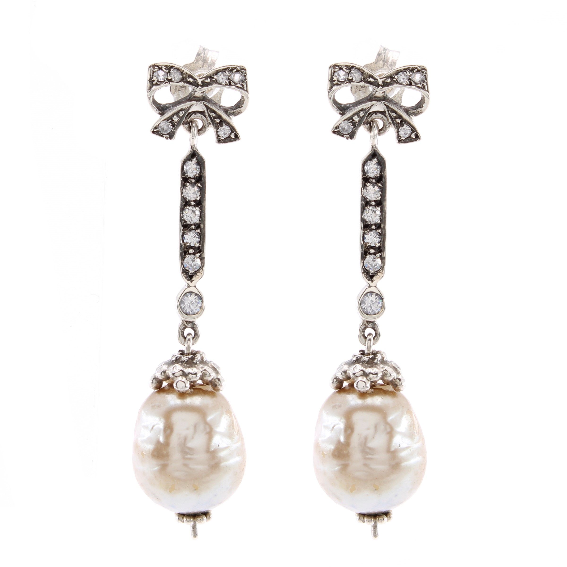 Orecchini bijou pendenti in argento perle di vetro e strass