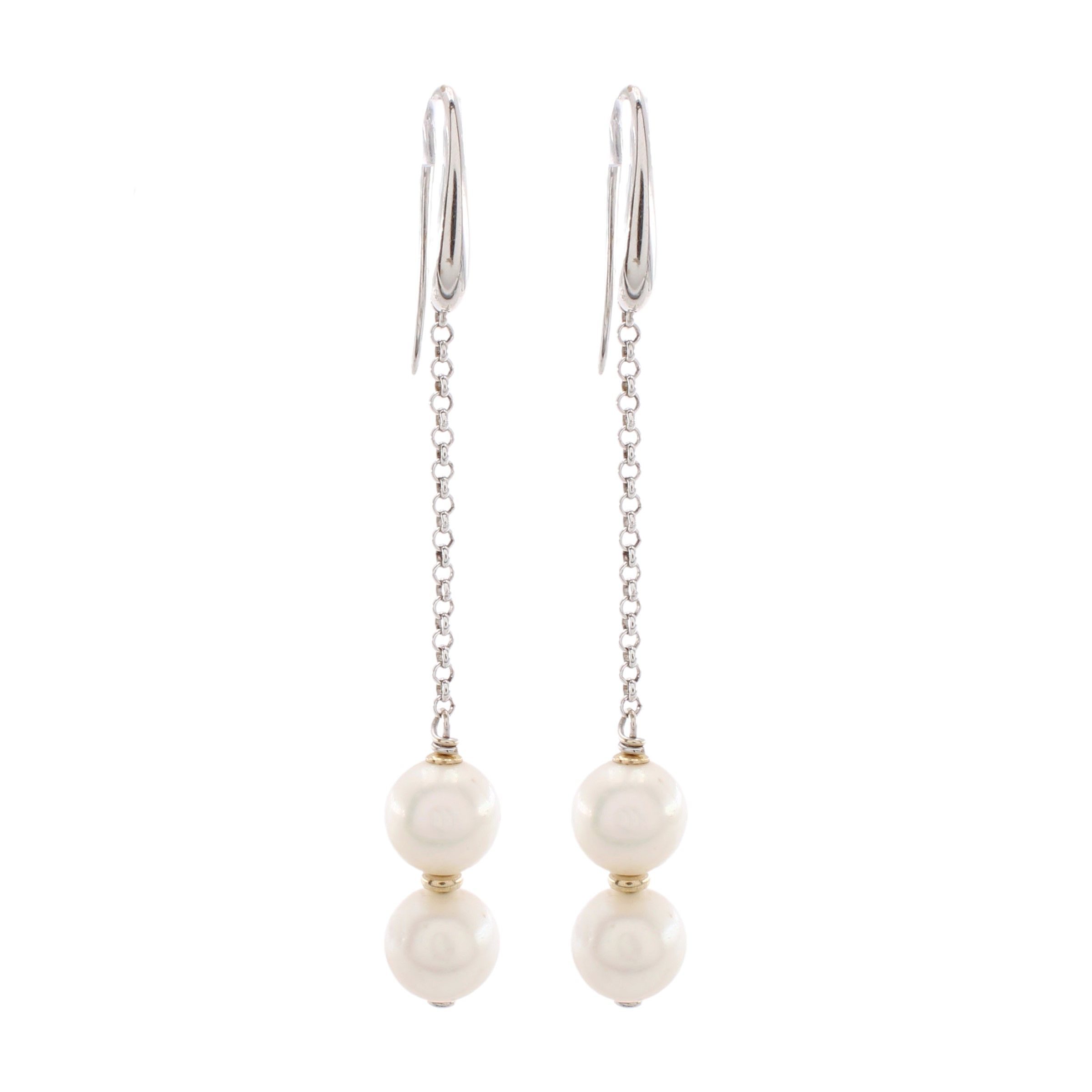 Orecchini pendenti in oro bianco 18kt e perle coltivate