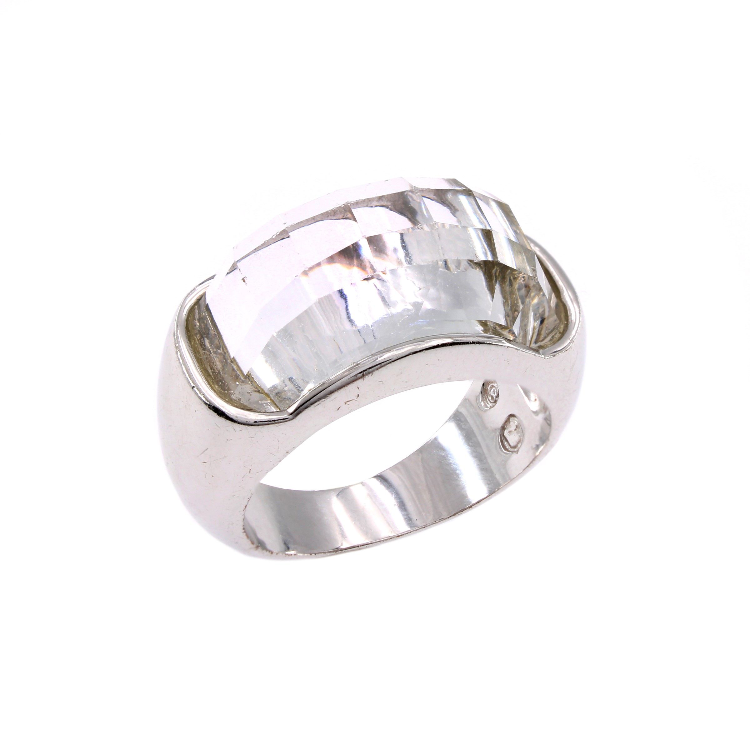 Swarovski anello bijou in metallo argentato e cristallo sfaccettato
