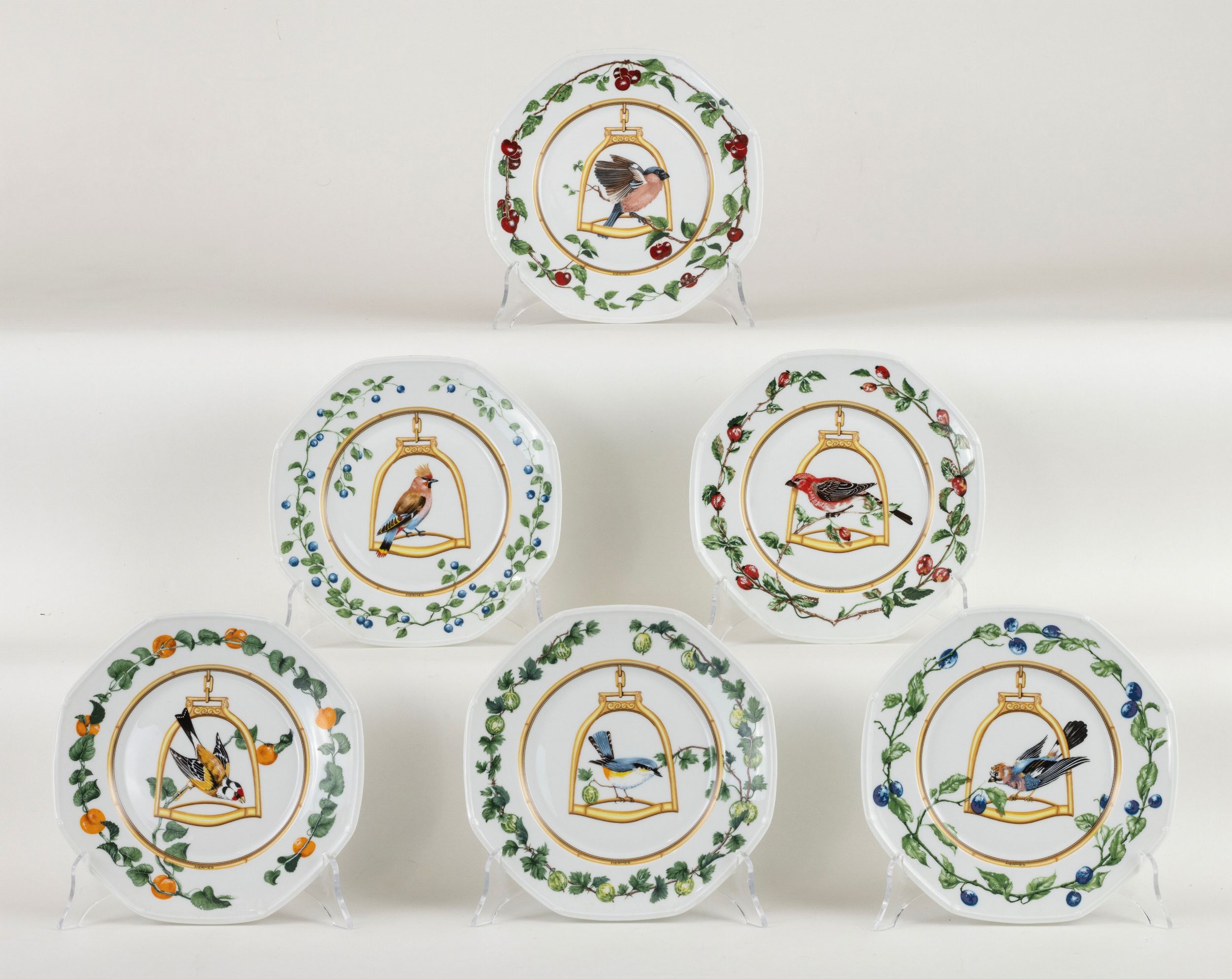 Sei piatti in porcellana Limoges-Hermès L'Etrier Perchoir