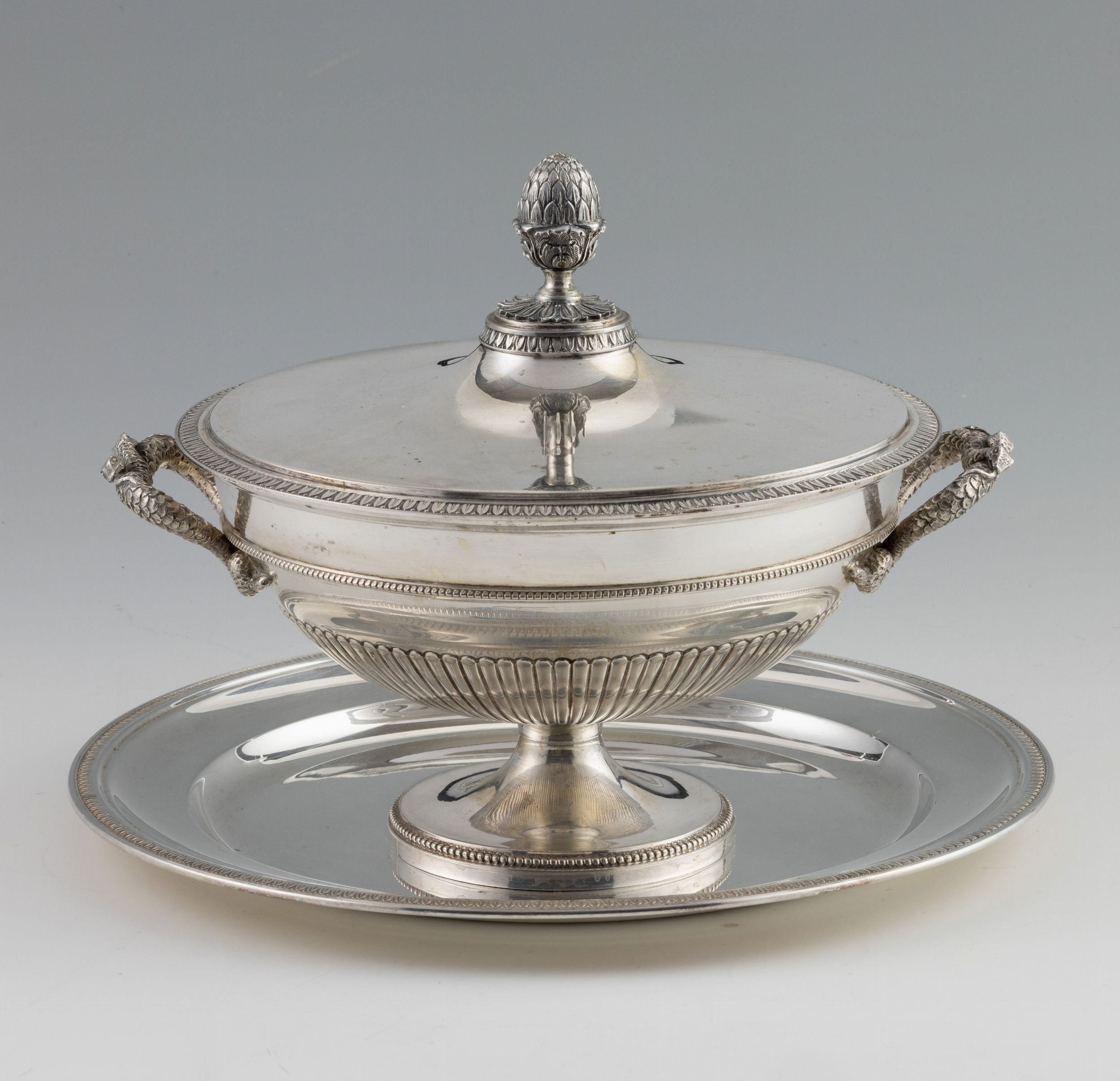 Zuppiera con piatto in argento