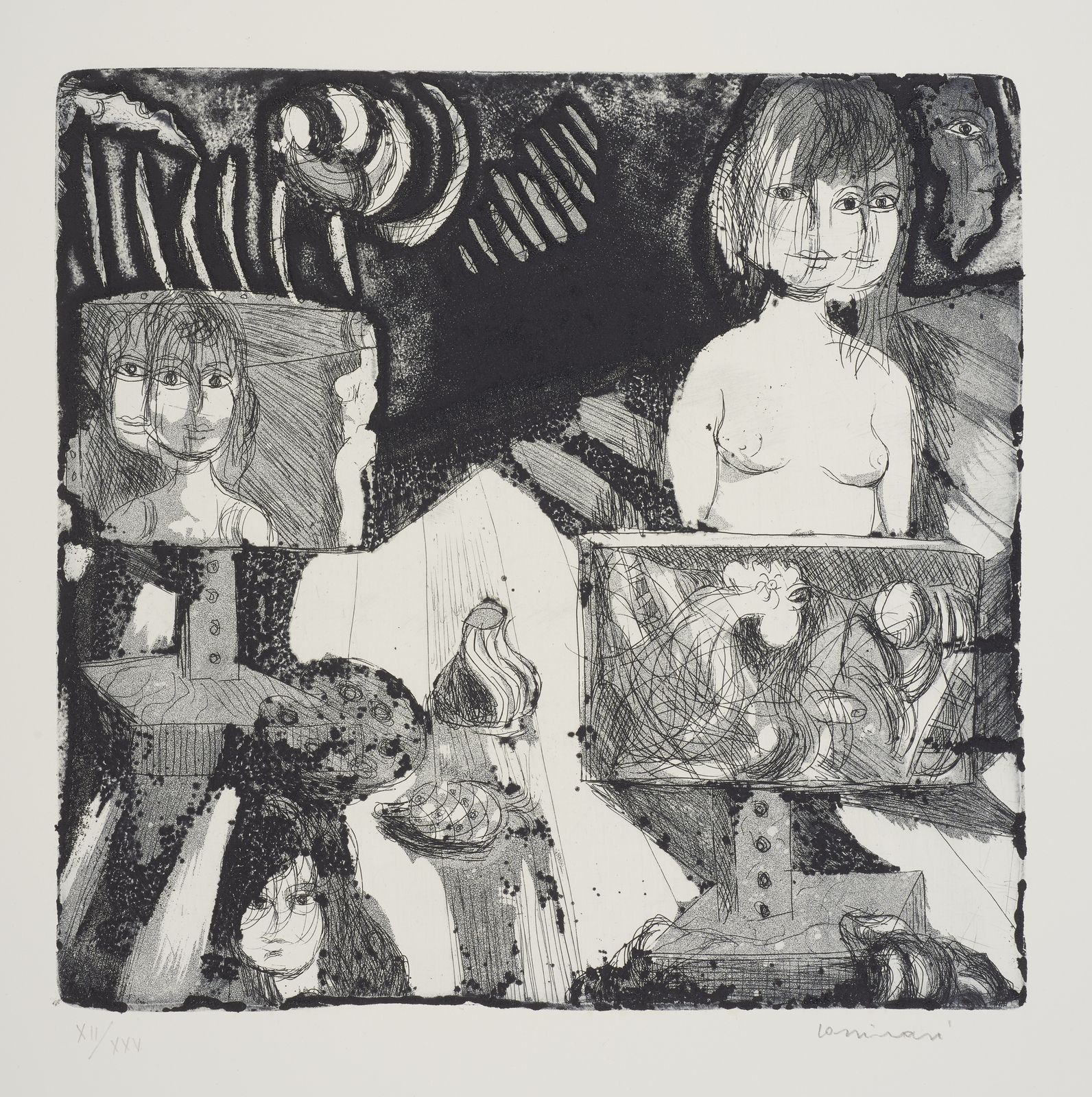 tiratura e firma a matita, es. XII/XXV. Dimensione lastra: 23.8x24.3 cm.
