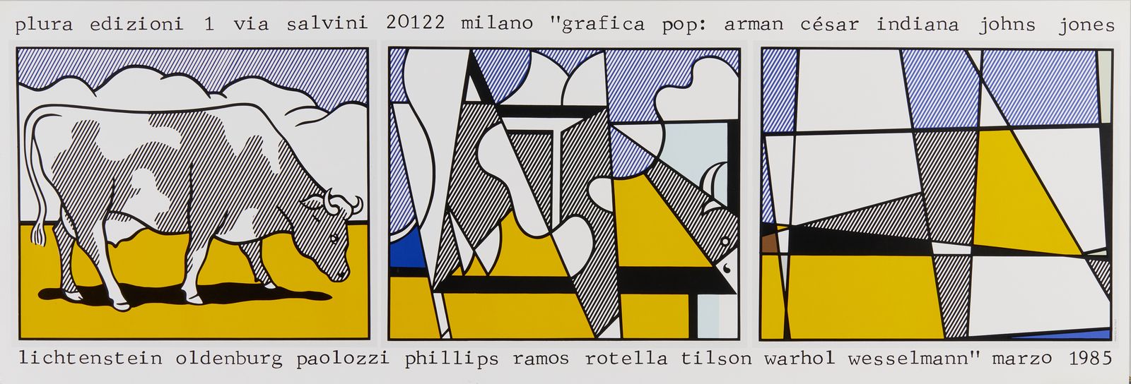 Tiratura di 150 esemplari.Manifesto della mostra: ''Grafica pop: Arman, César, Indiana Johns Jones, Lichtenstein, Oldenburg, Paolozzi,Phillips, Ramos, Rotella, Tilson, Wharol, Wasselmann.''