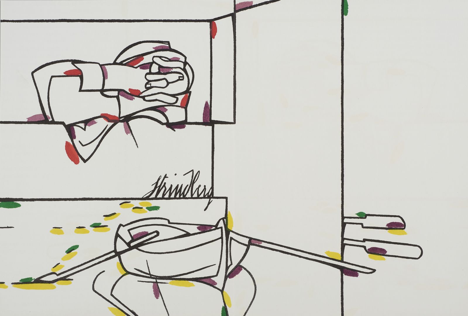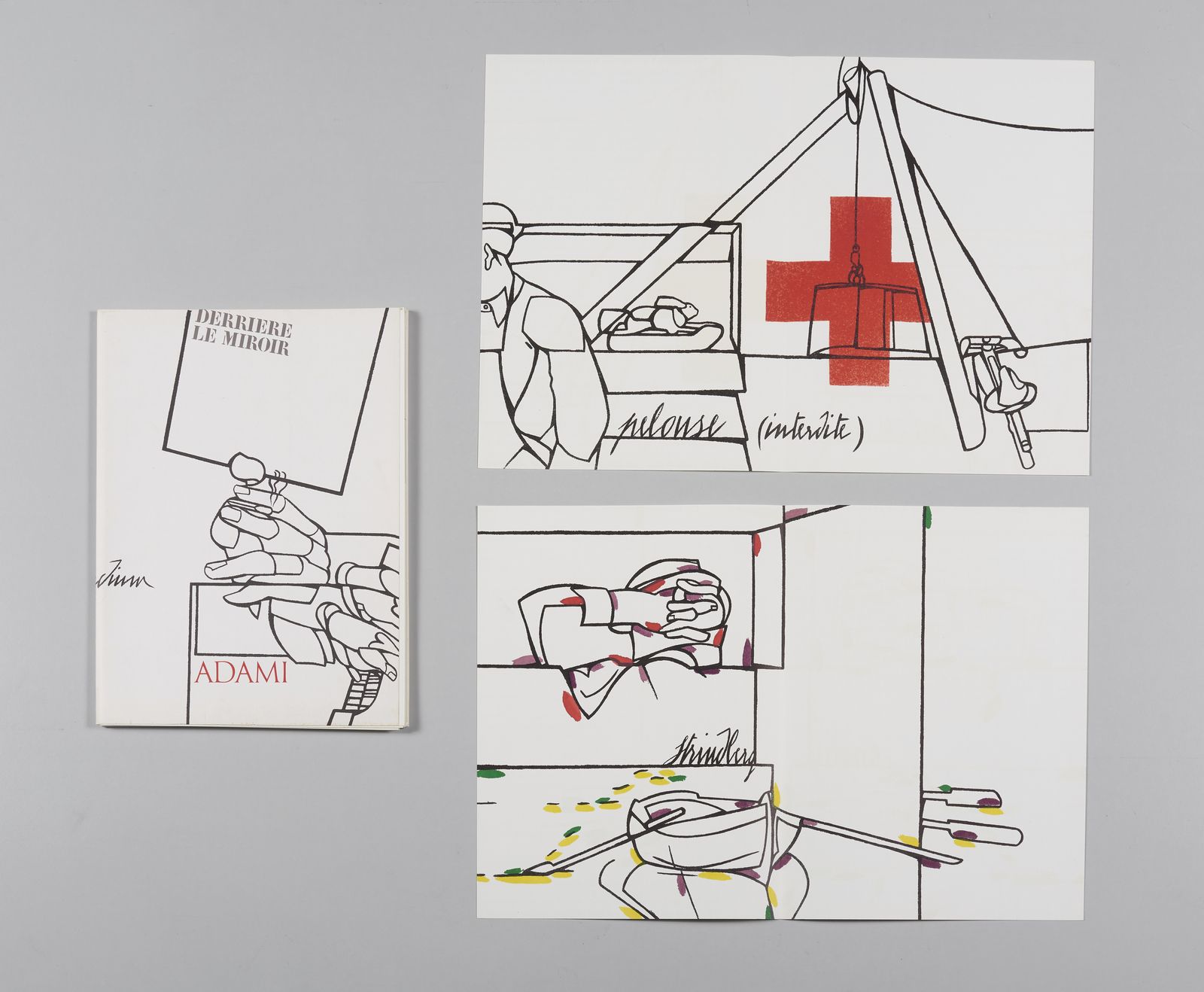 N.214 - maggio 1975.Tiratura di 150 esemplari, Maeght Editeur, Paris.Litografia 1-''Gorki a Capri.'' 1974. 28x38 cm, firmata e datata in basso a destra, titolo in basso a sinistra.litografia 2- ''Dessin d'une photo de Ben Shahn''. 28x38 cm.litografia 3- ''L'ecrasement de la balle contre la raquette au racquet Club of Chicago.'' 28x38 cm, titolo in basso a sinistra, firma in basso a destra.litografia 4- '' Stalin's injuries'' 1974, 38x28cm , titolo al centro, firma e data in basso a destra.litografia 5- ''La meccanica dell'avventura'' 1975, 28x38 cm, titolo in alto al centro, firma e data in basso a sinistra.litografia 6- 1975, 28x38 cm, titolo in basso a sinistra, firma e data in basso a destra.litografia 7- ''Strindberg''. titolo al centro. 56x28 cm.litografia 8- Pelouse (intervite)''. titolo in basso al centro, 56x28 cm.litografia 9- ''Sequenza'', 1975, 38x28cm, titolo,firma e data in basso a destra.litografia 10- ''Sans tire'' 1975, 28x38 cm, firmato e datato in basso a destra.litografia 11- ''Elegy for youg lovers'', 1975, titolo, firma e data in basso a destra.litografia 12- ''Scena domestica'', 1975, 28x38 cm, titolo in basso a sinistra, firma e data in basso a destra.litografia 13- ''Mies Van der Rohe'', 1975, titolo, firma e data a destra.litografia 14- ''Autobiografia'', 1975, 28x38 cm, titolo in basso a sinistra, firma e data in basso a destra.litografia 15- ''Viaggio all'est'', 1975, 28x38cm, titolo, firma e data in basso al centro .Maeght editeur, Paris.