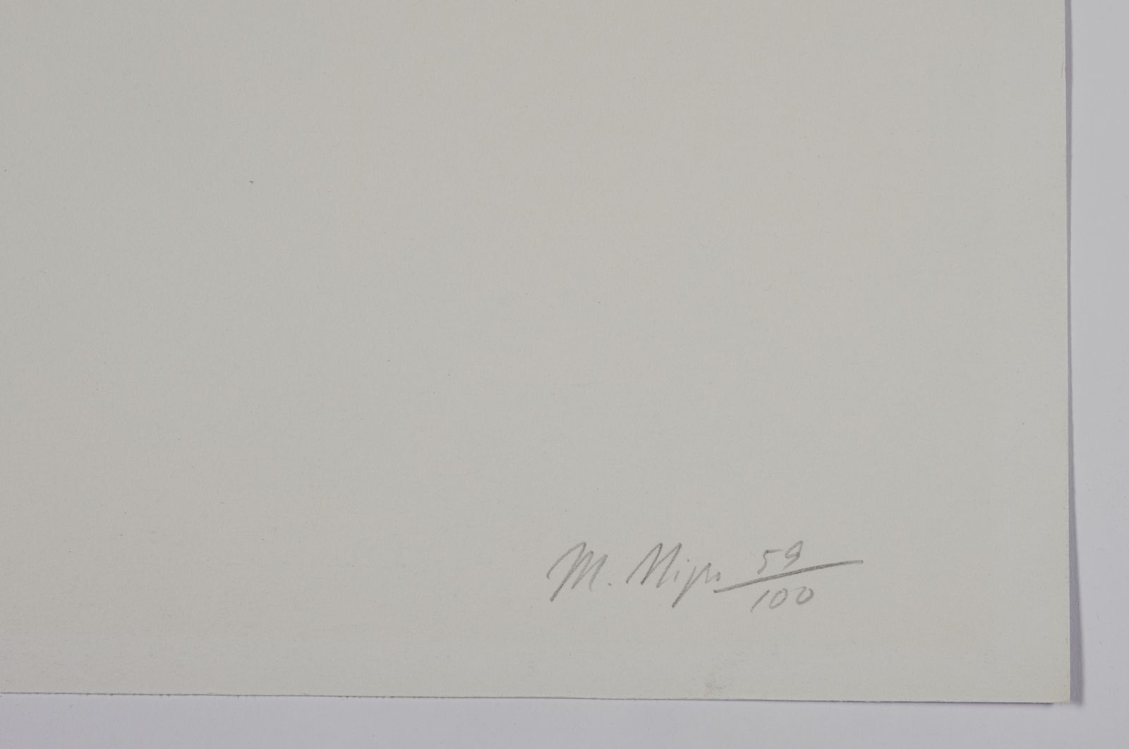 59/100. Cartella composta da n.10 fogli firmati e numerati al retro a matita. Entro custodia originale. Editore Studio d’Arte Contemporanea Dabbeni. Le dimensioni segnalate in catalogo sono di ciascun foglio. L’opera è stata realizzata dal progetto per il lavoro presentato alla 39° Biennale di Venezia (1978) per la Rassegna Internazionale: Arte Natura/ La Natura dell’Arte: “ETTORE e ANDROMACA”. Prefazione contenuta nella cartella a cura del prof. Luciano Caramel.