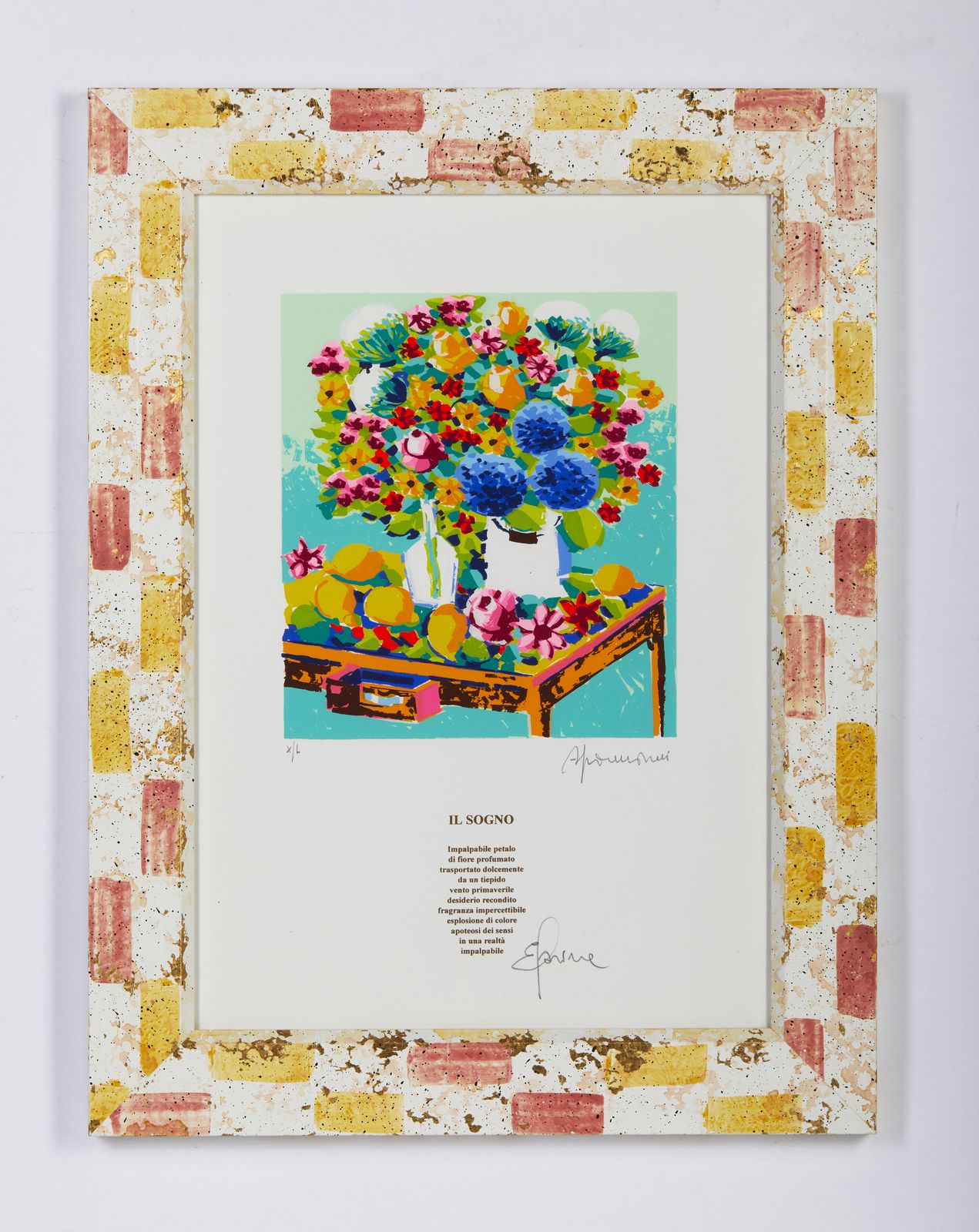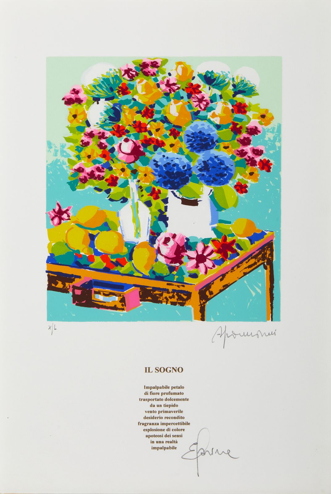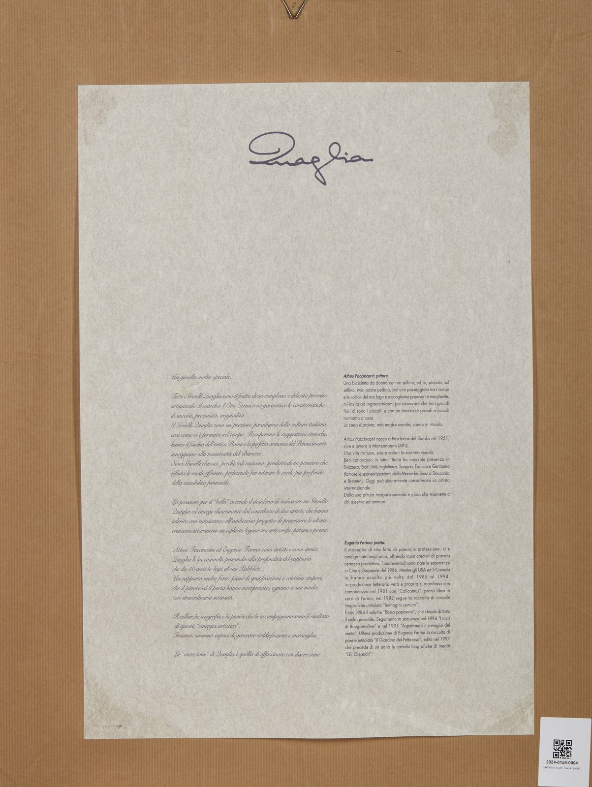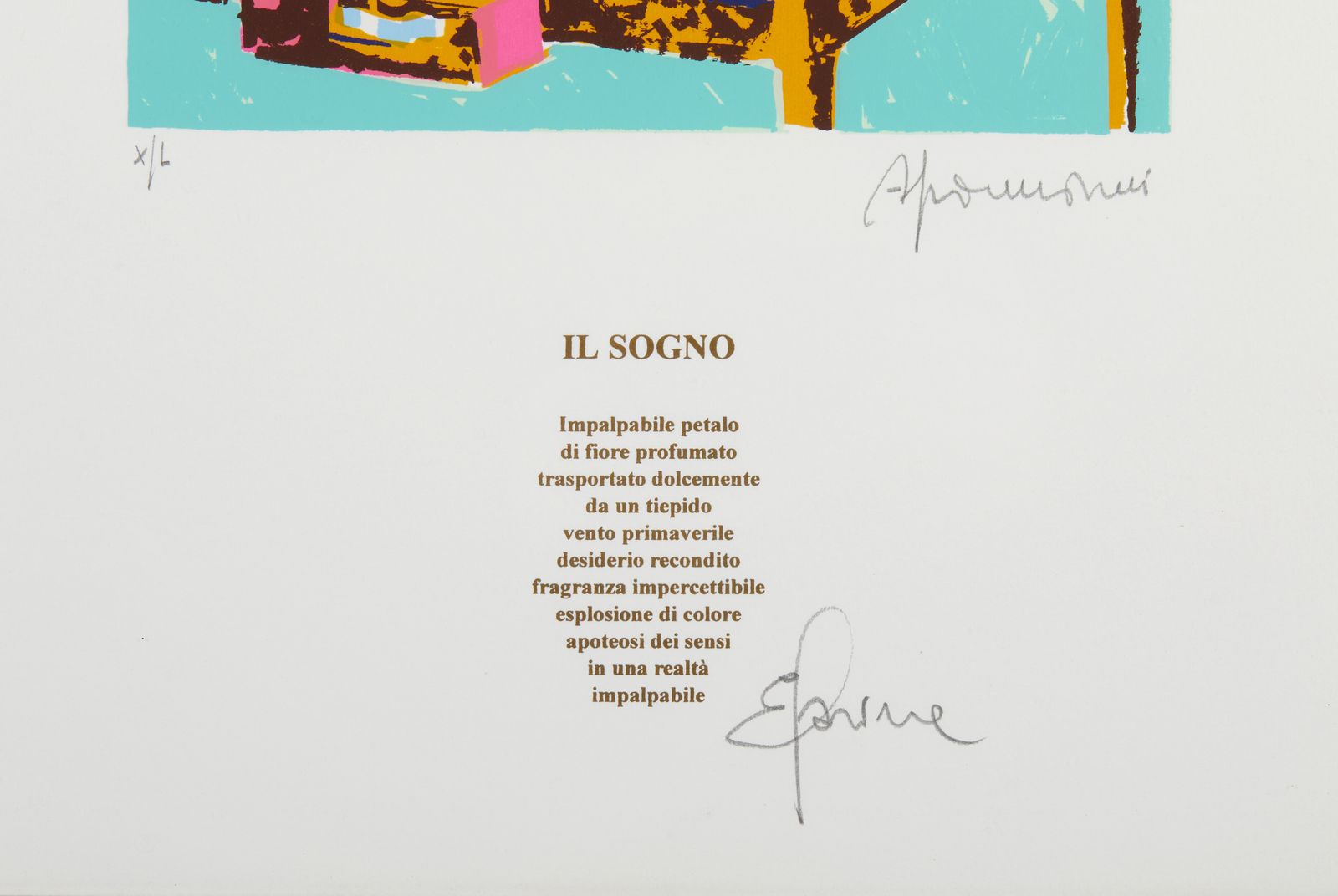 X/L. Tiratura e firma in basso a matita.Poesia di Eugenio Farina, firmata in basso matita.Dimensioni lastra: 23x26,4 cm.