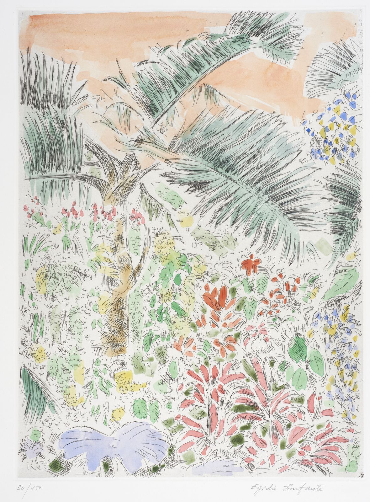 tiratura e firma a matita, 30/150. Dimensione lastra: 39.5x29.5 cm. Filigrana Linati. Edizione fuori commercio Olivetti. Edizione totale: 150 esemplari. Lievi difetti.
