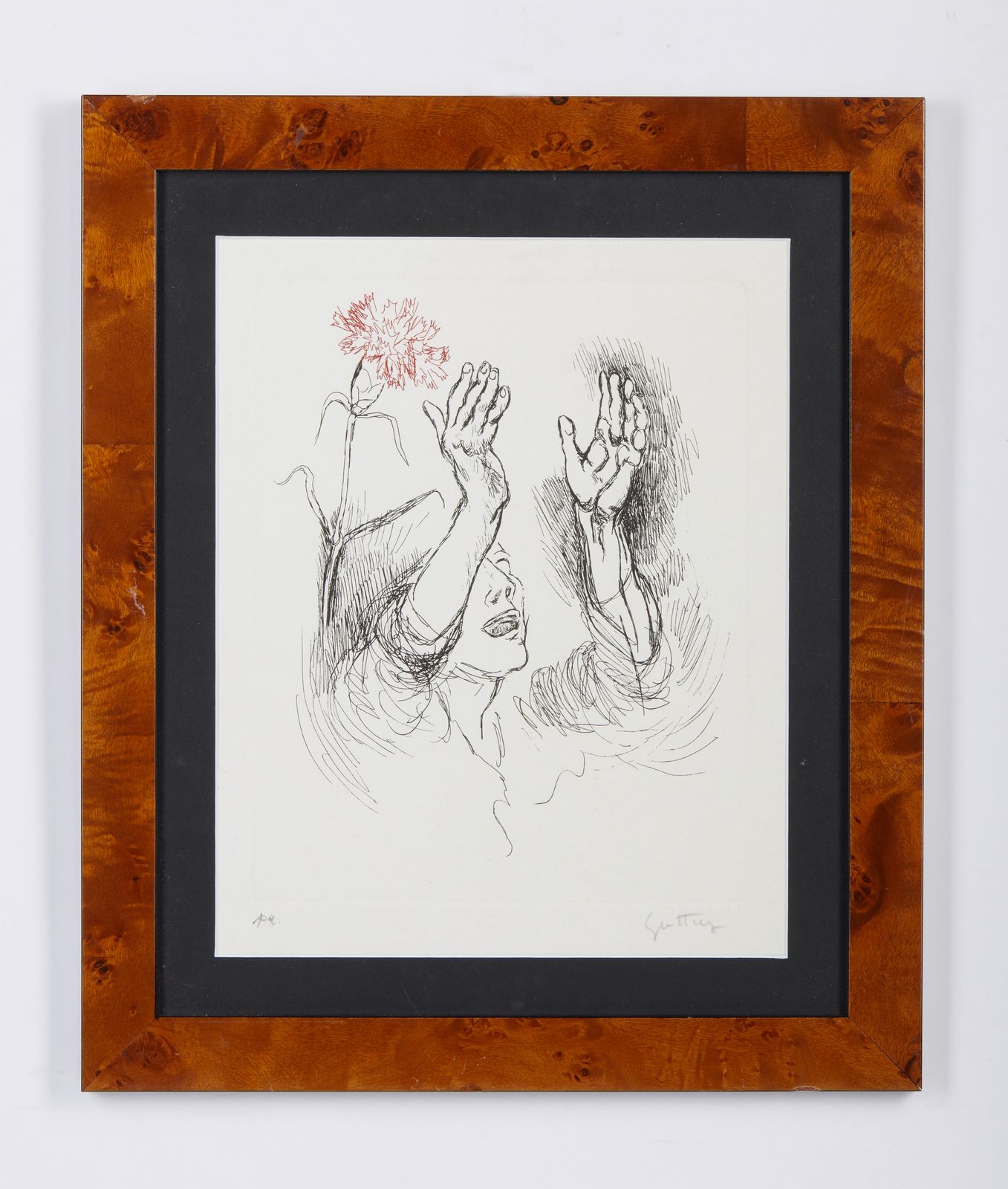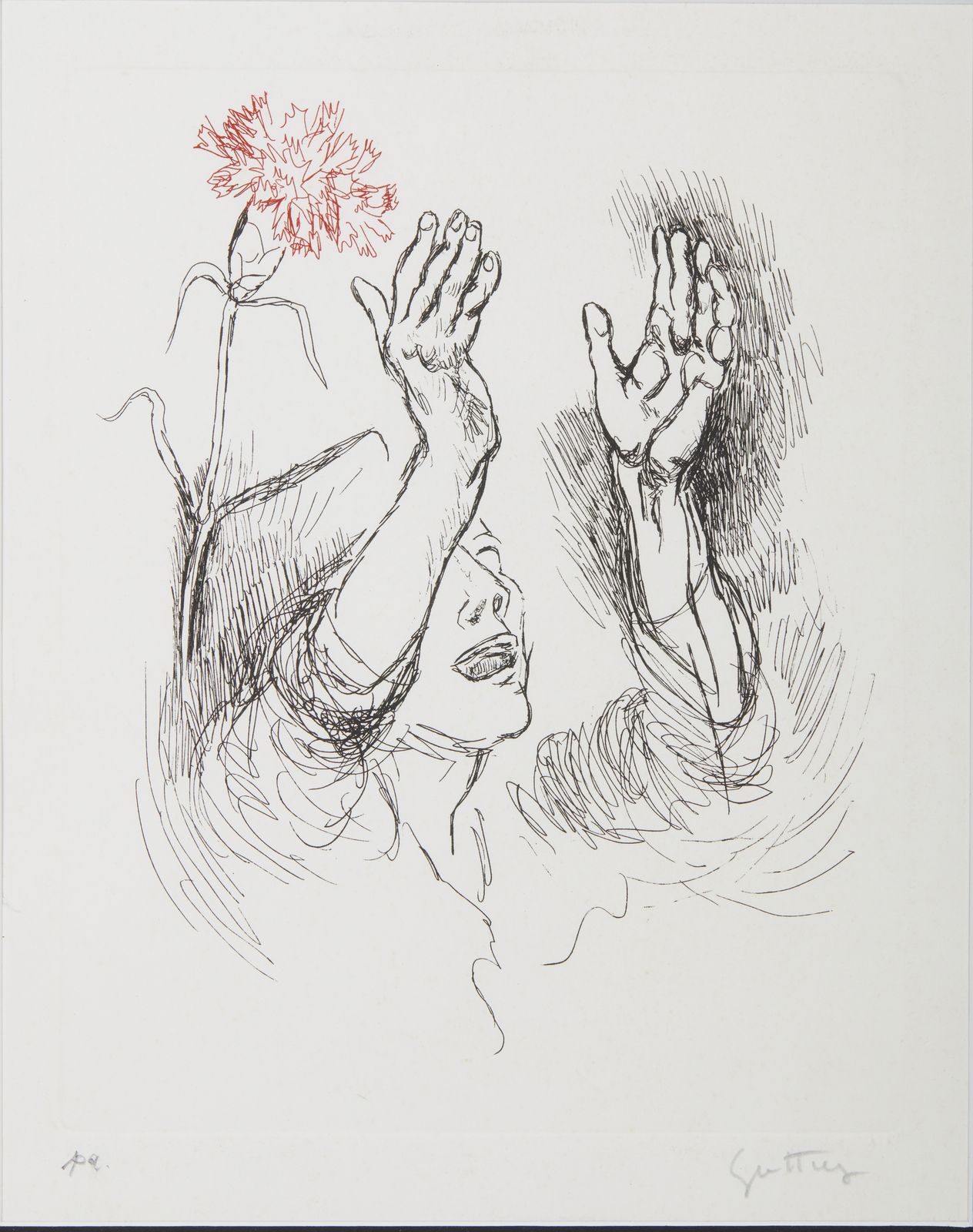 tiratura e firma a matita, es. p.a.Dimensione lastra: 19,5 x 24,5 cm.