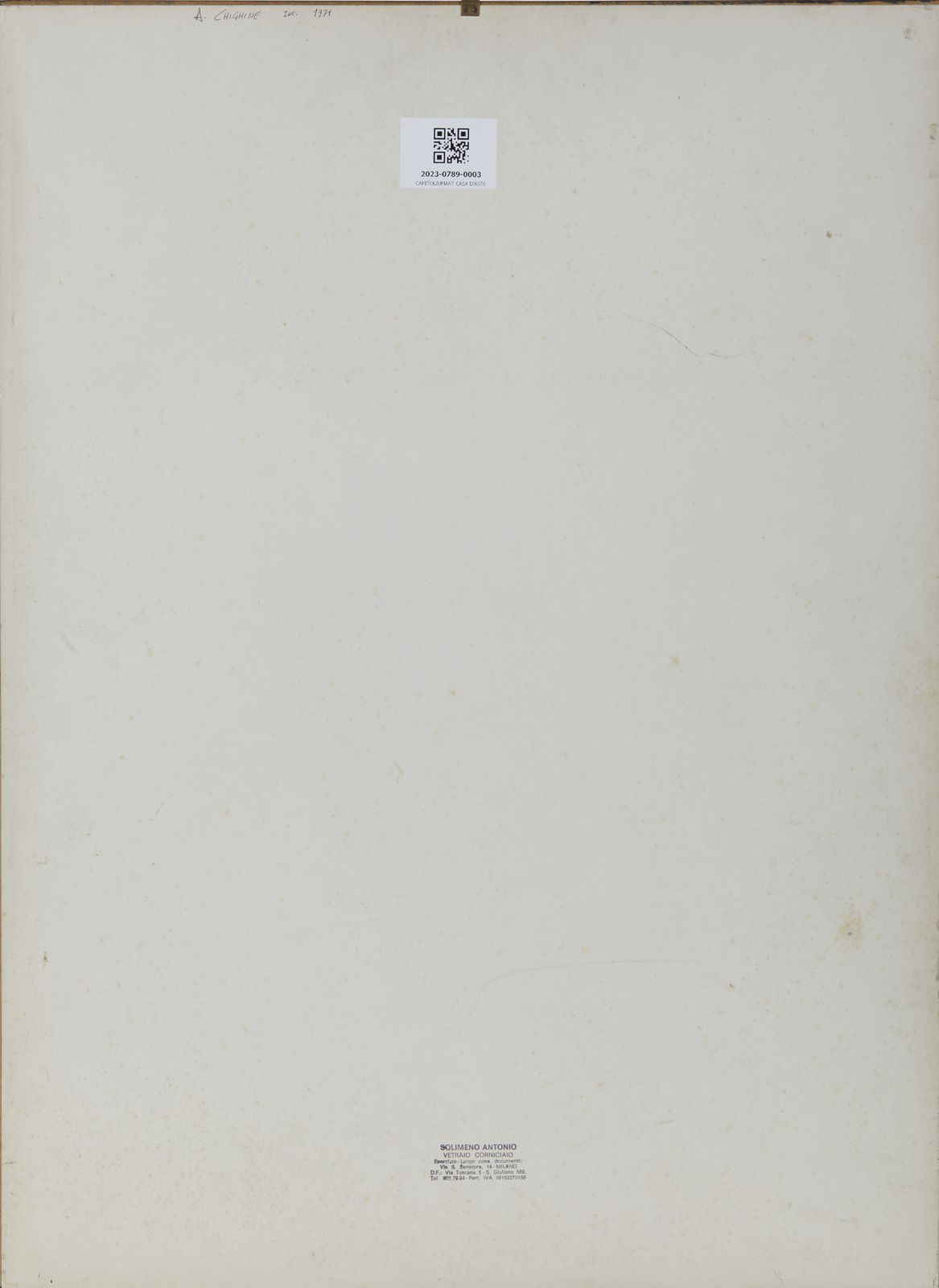 46/100. Tiratura e firma in basso a matita. Timbro a secco 50° Pci Torino in basso a sinistra. Dimensione lastra: 32 x 27 cm.