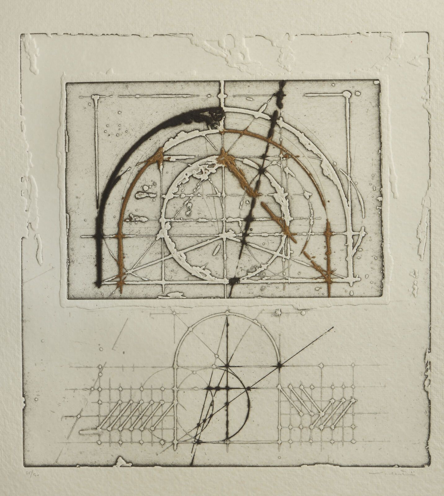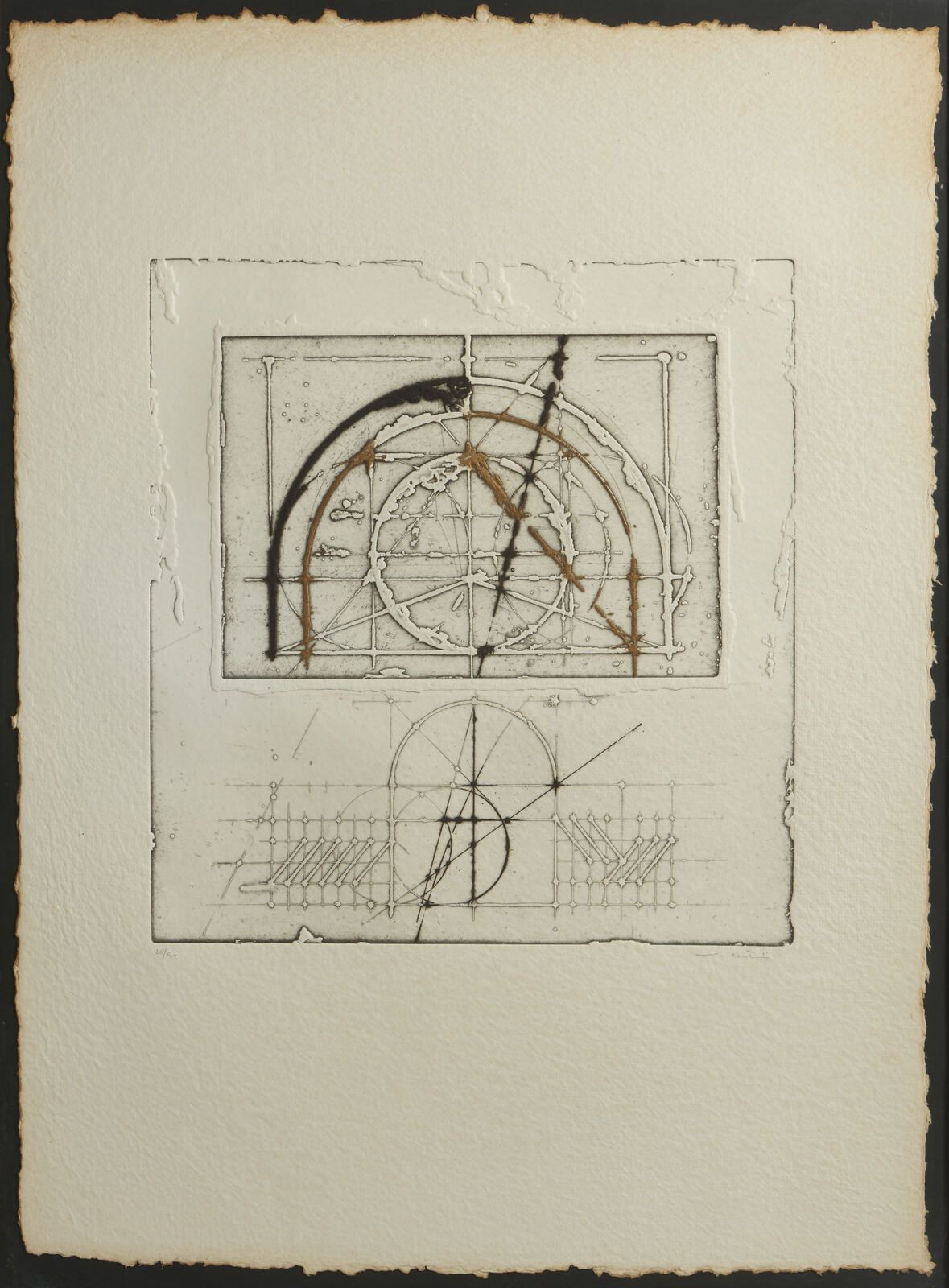 tiratura e firma a matita, es. 28/40.dimensioni lastra: 41x38 cm