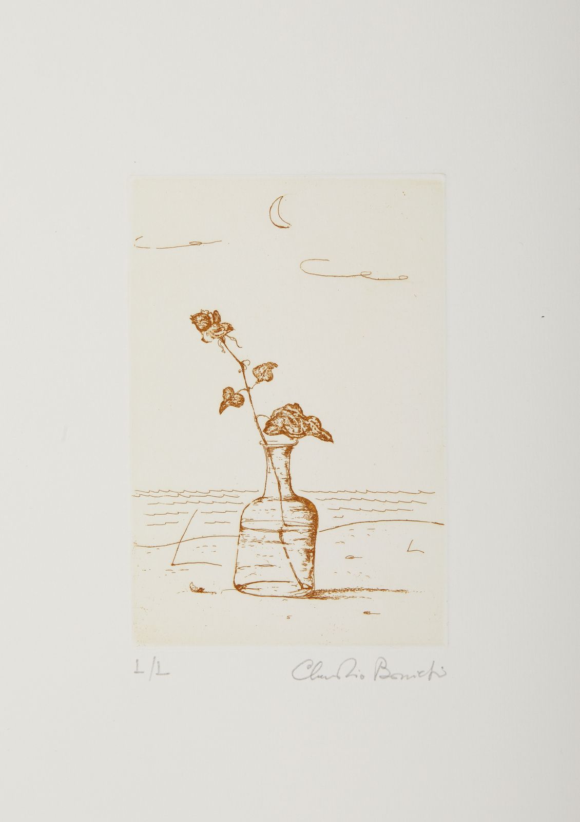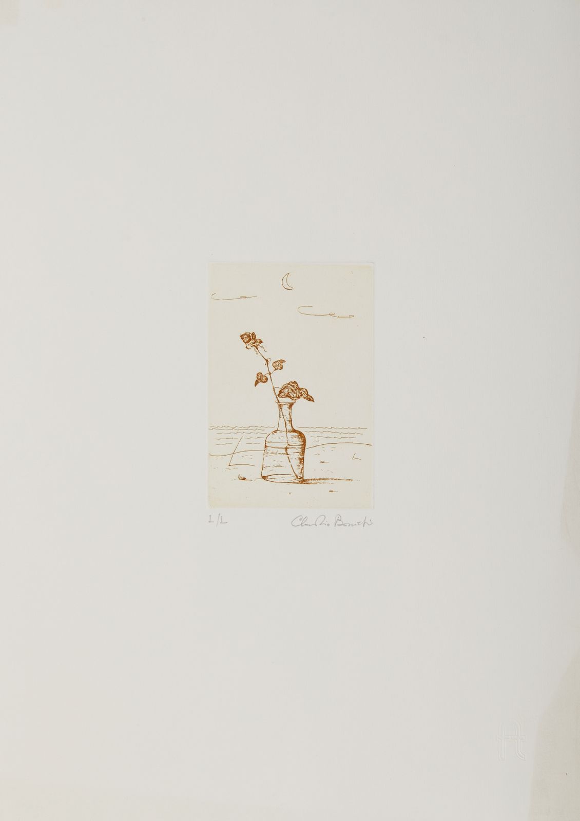 tiratura e firma a matita, es L/Ltimbro a secco Galleria Turelli.Dimensione lastra: 14.7x9.7 cm.