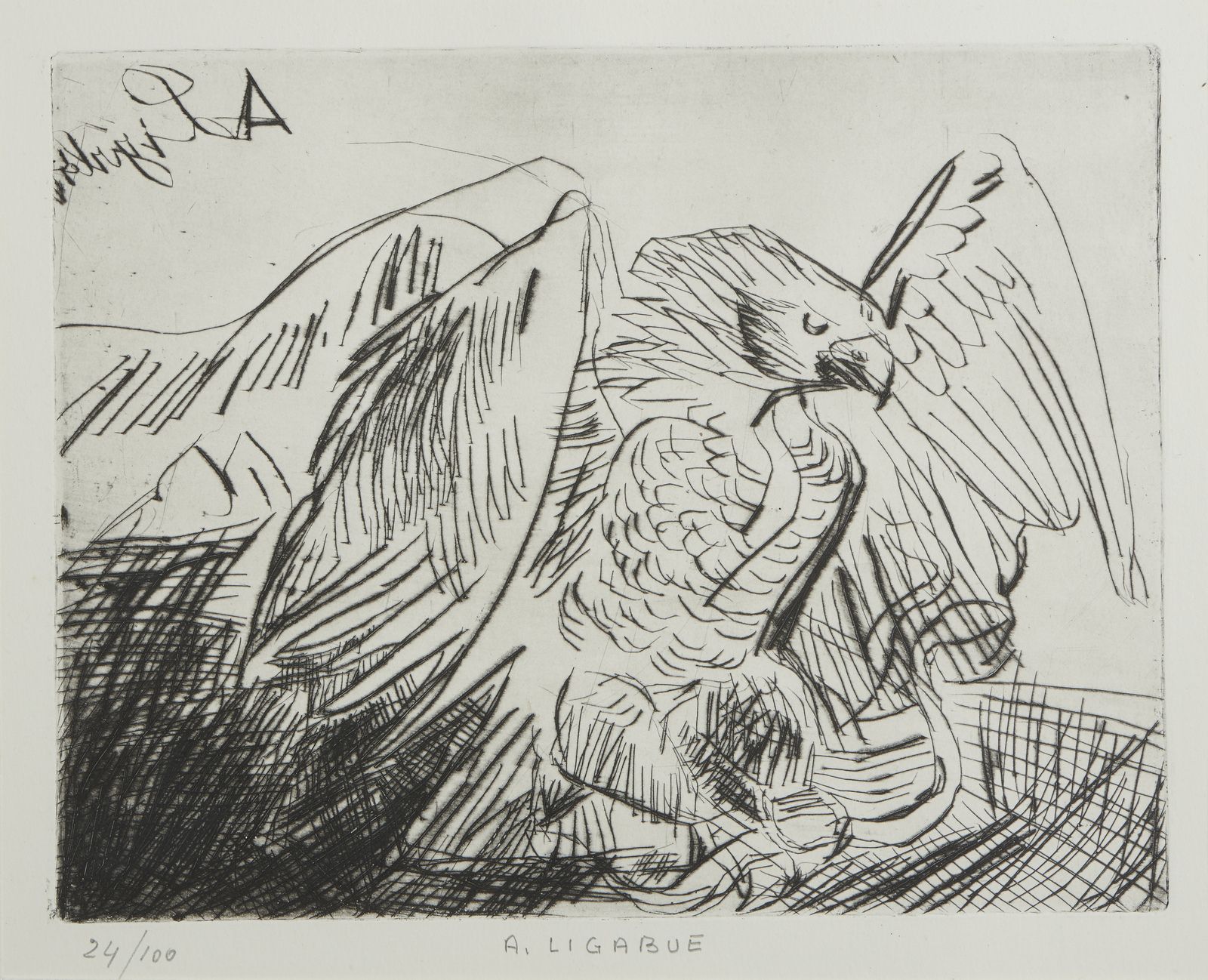 firma e tiratura in basso a matita, es. 24/100.Dimensioni lastra:24,5x19,5Al retro etichetta Galleria Caldarese, Bologna e timbro Alfonso Tagliavini, Parma.