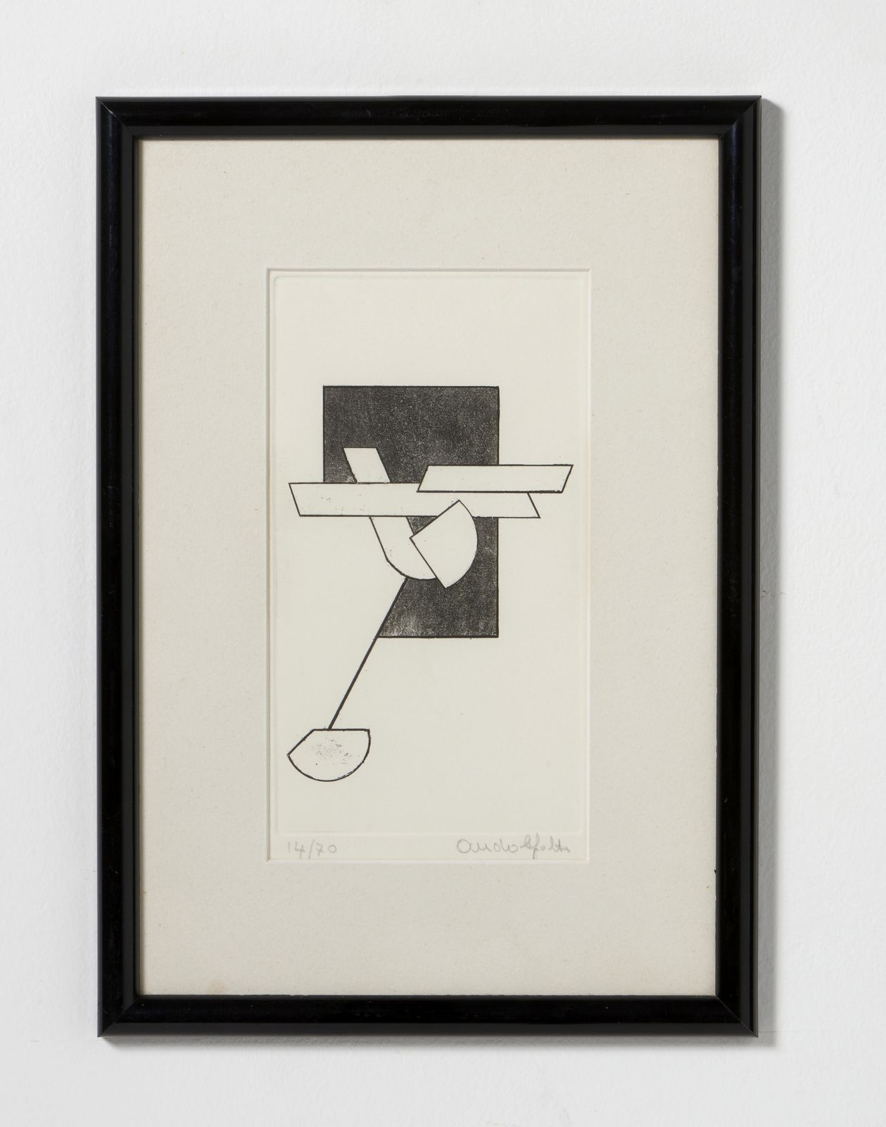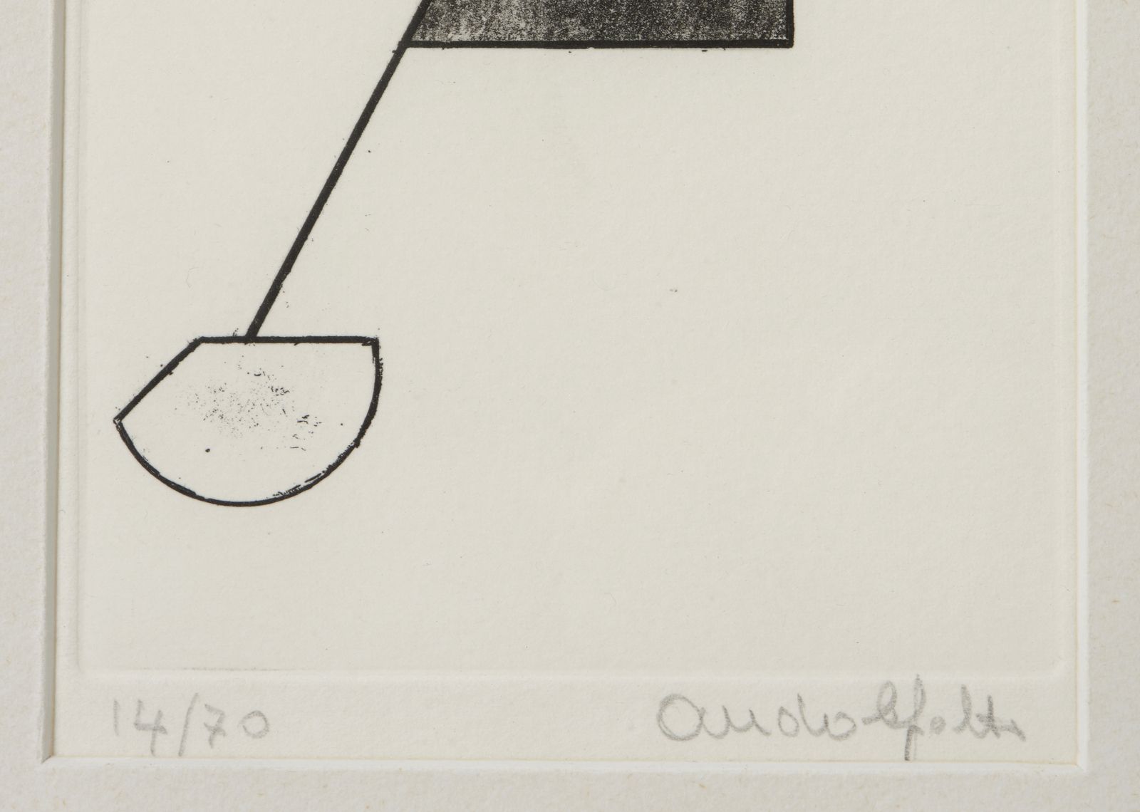 tiratura e firma a matita, es.14/70.Dimensioni lastra:10,5 x 19,5 cm.