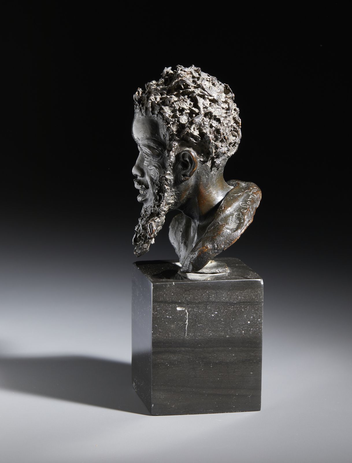 Firmato al retro ''V. De Pompeis''. Dimensioni con base in marmo: 21x8,5x8 cm.