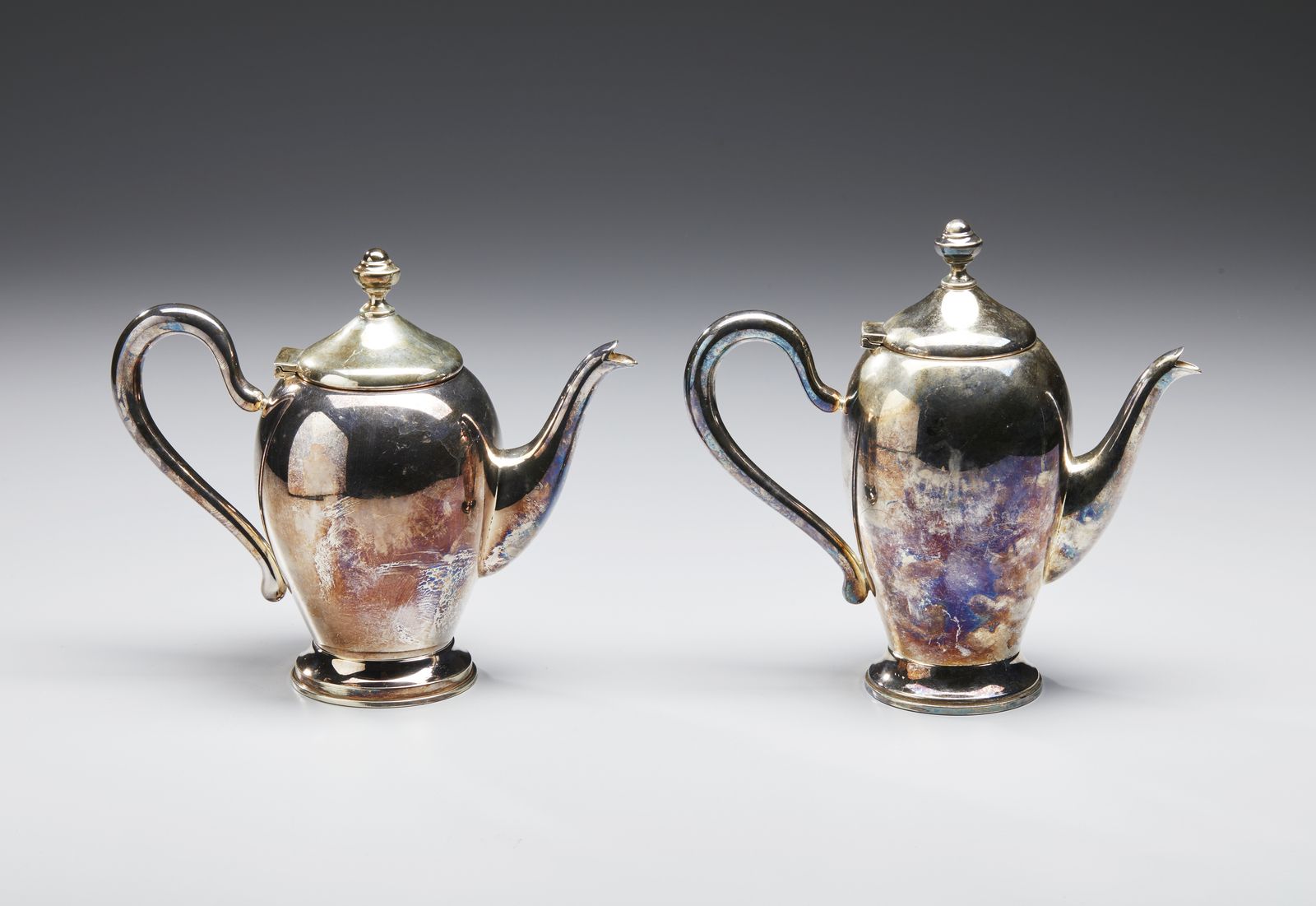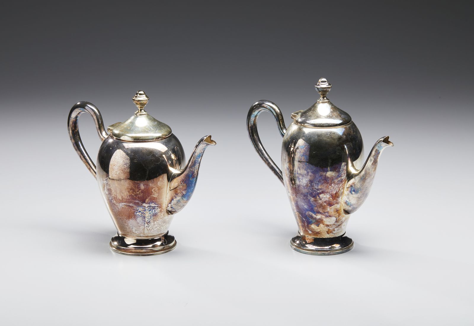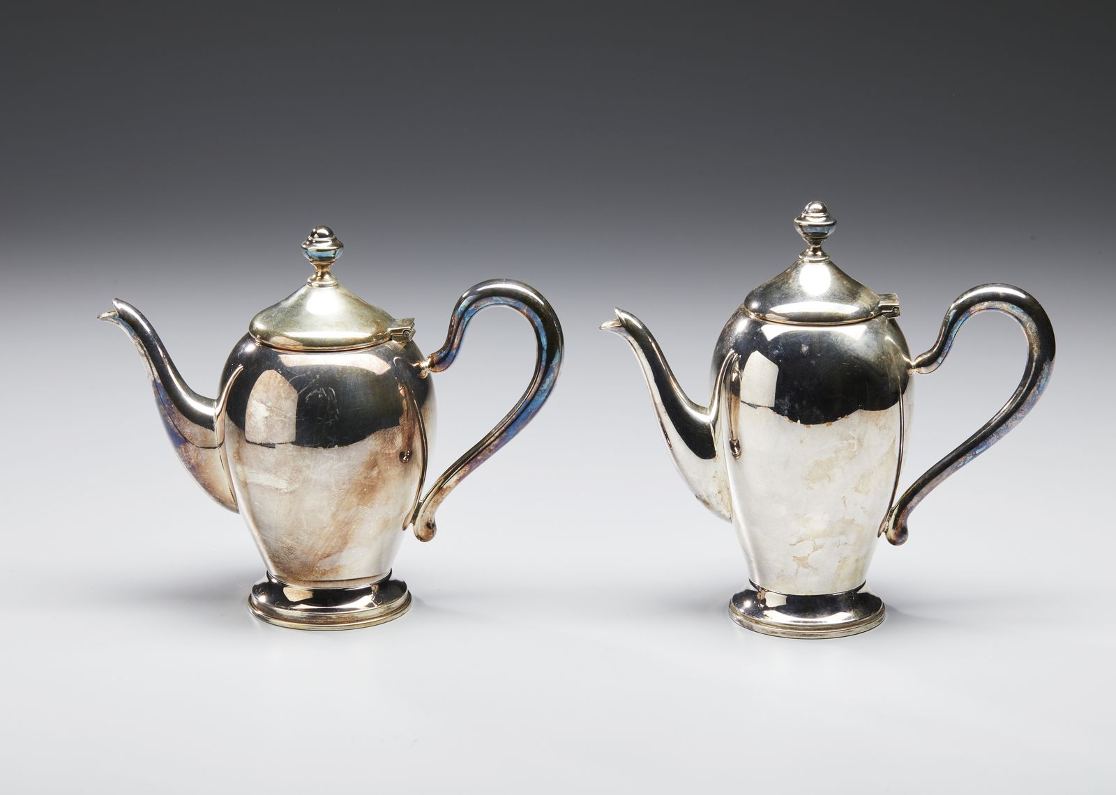Caffettiera e teiera in argento, corpo piriforme poggiante su base circolare