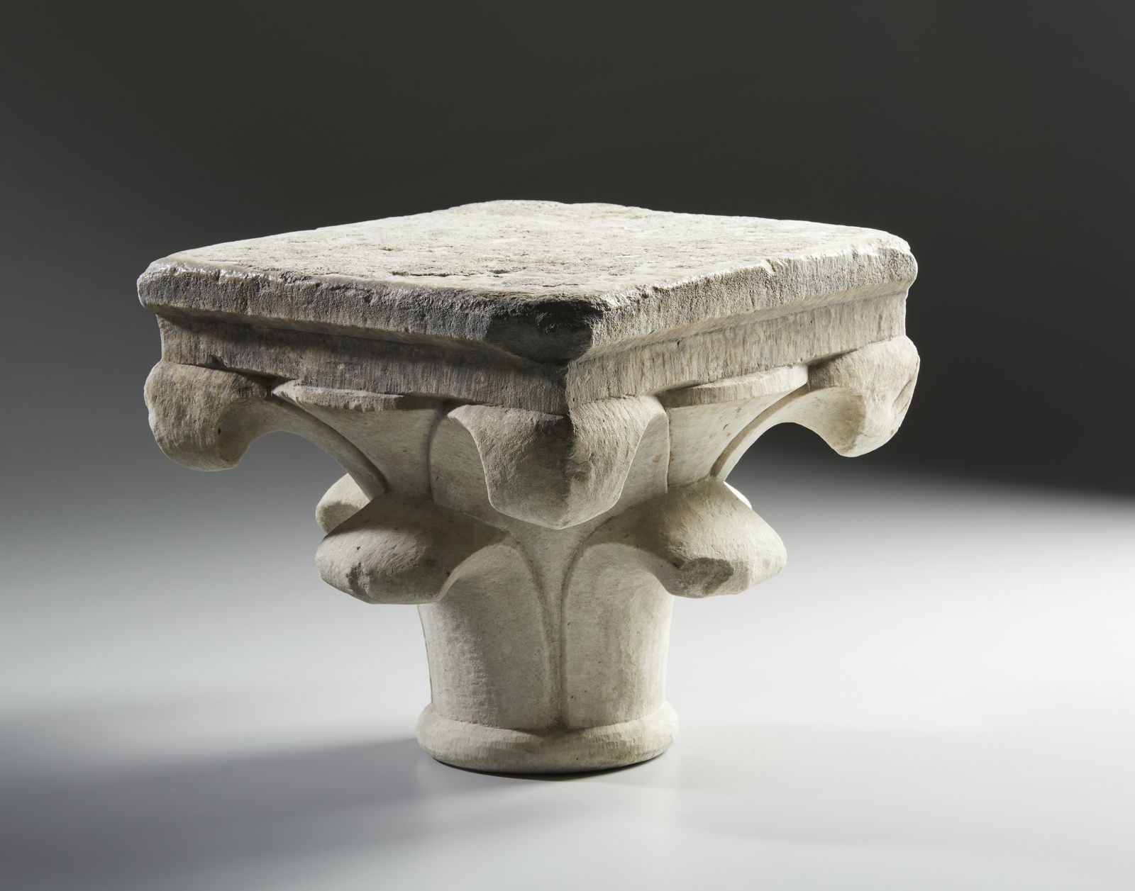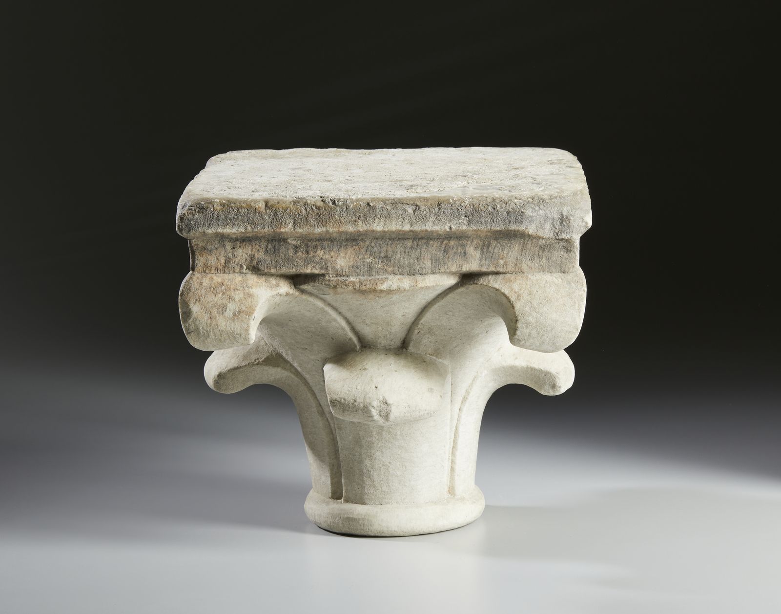Capitello in marmo con decorazione a foglie d'acanto stilizzate