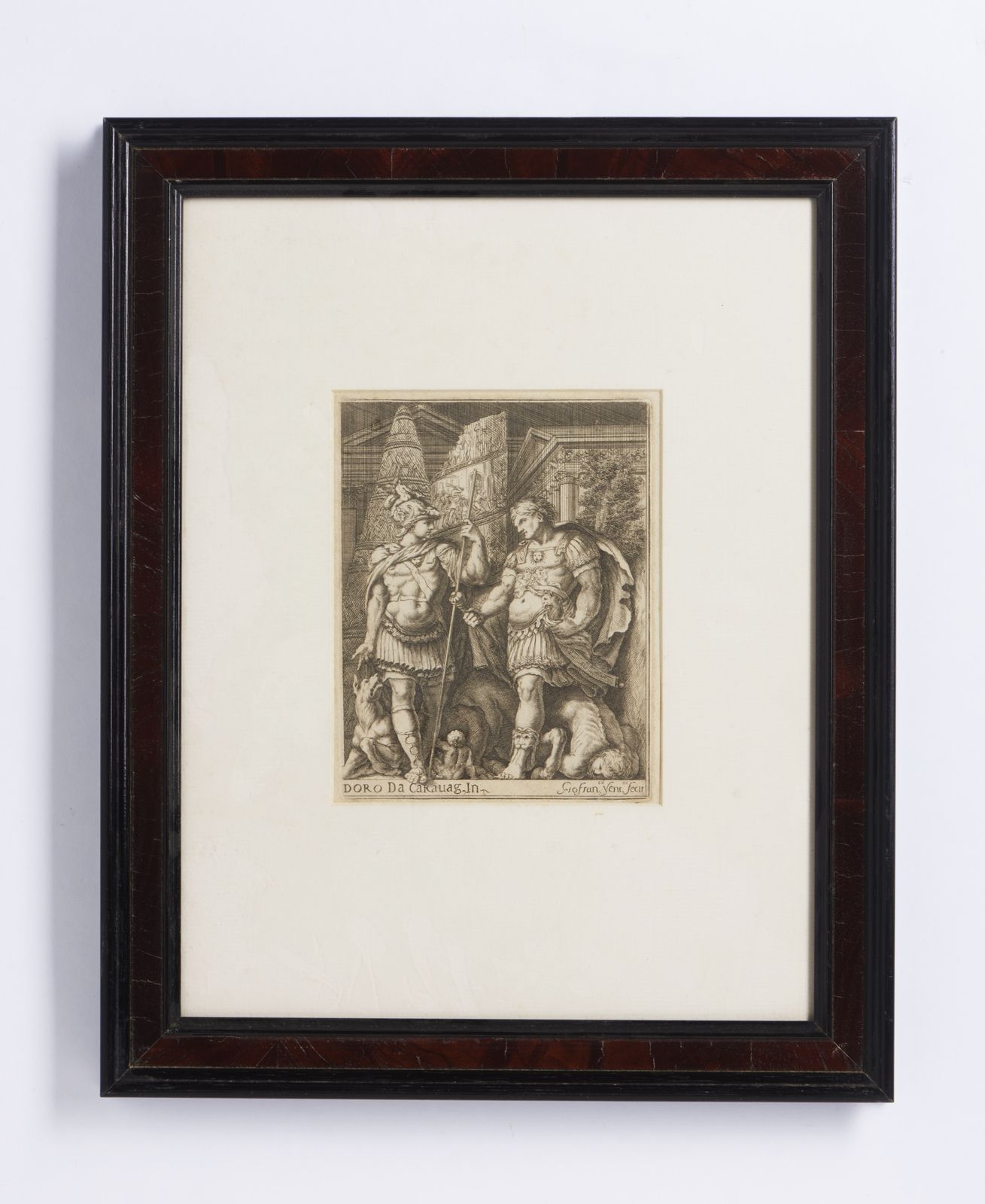 Da. Due condottieri abbigliati all'antica di fronte ad edifici classici