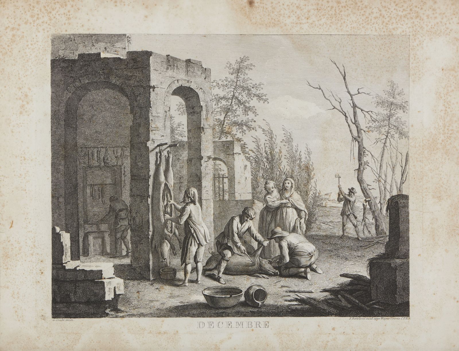 Gruppo di quattro acqueforti raffiguranti le allegorie del mese di gennaio, febbraio, [..]