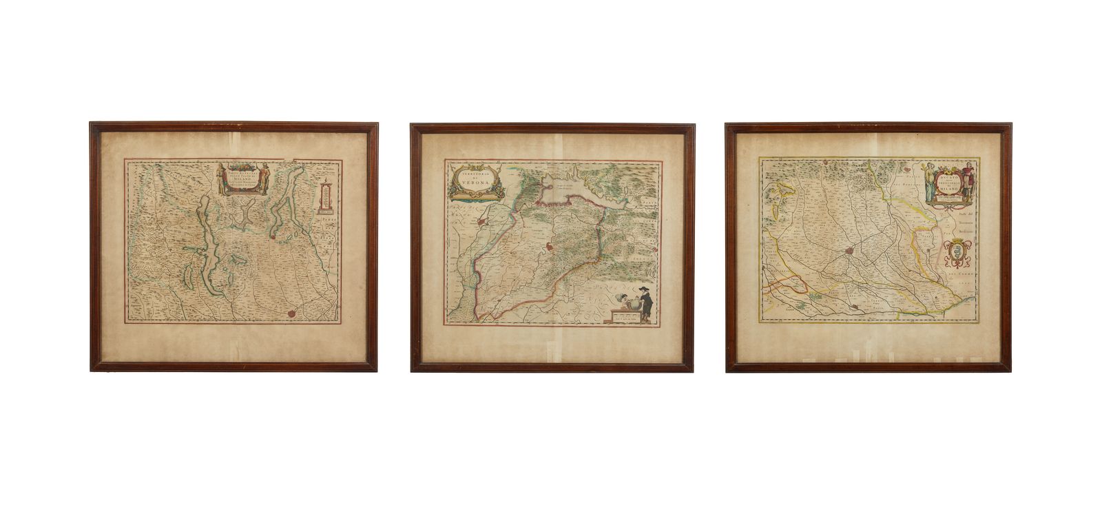 Gruppo di tre stampe raffiguranti la parte alpestre dello stato di Milano con il [..]