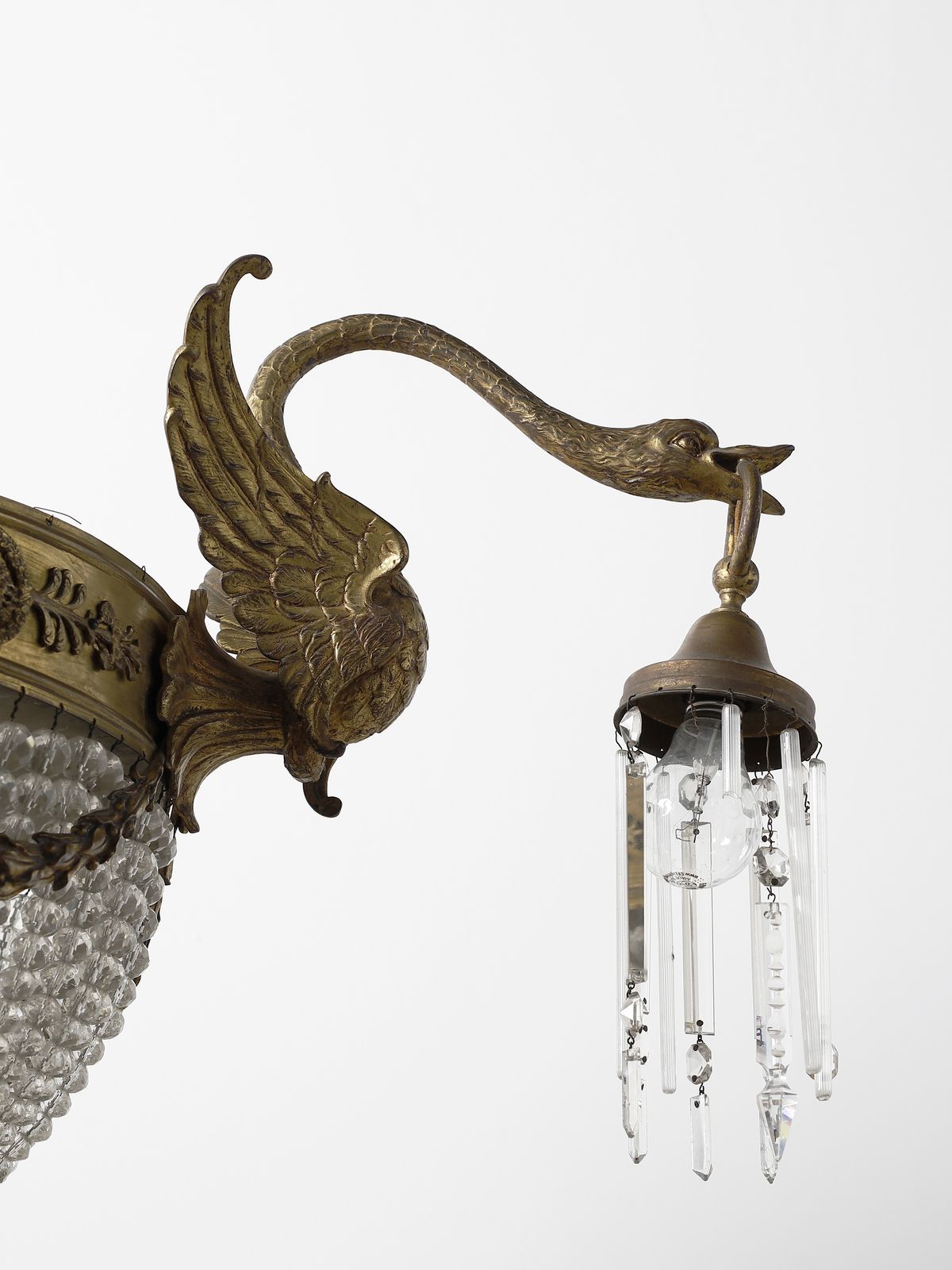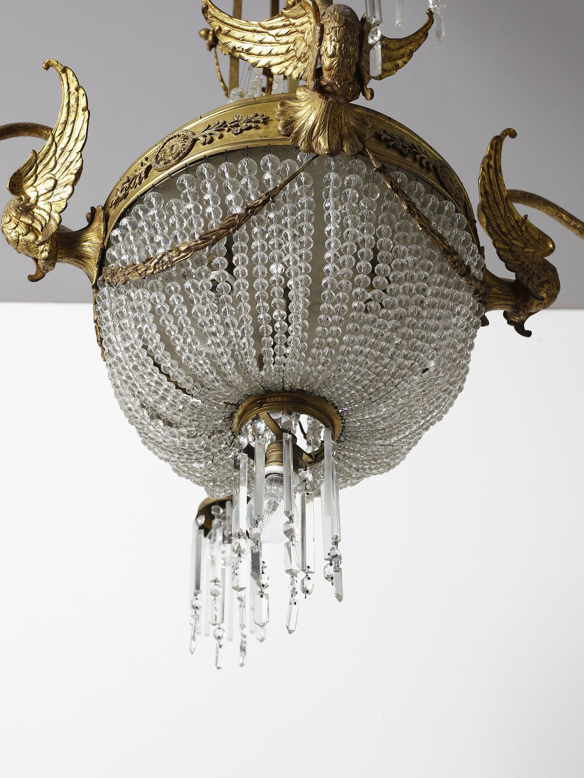 Lampadario Impero a mongolfiera in bronzo dorato e cristalli, bracci in foggia di [..]