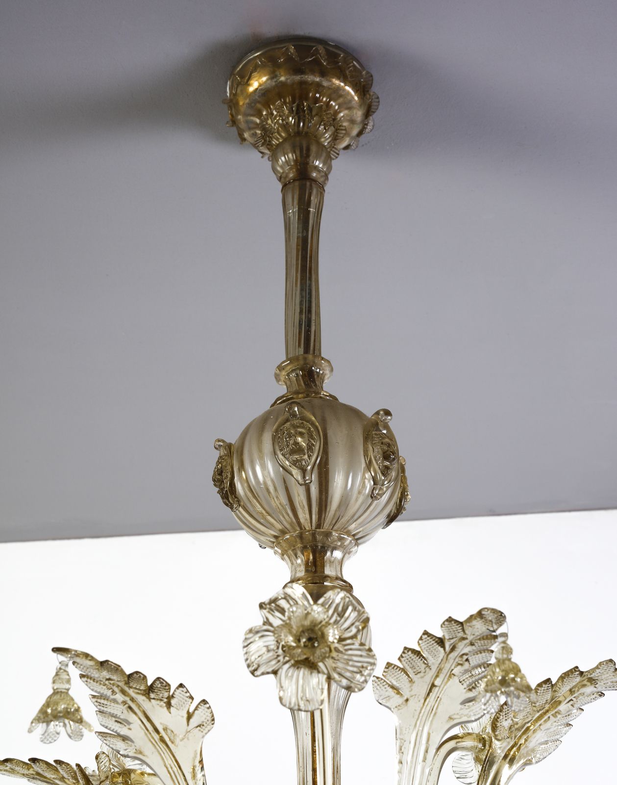 Lampadario in vetro di Murano trasparente, bracci mossi e decorazioni floreali e [..]