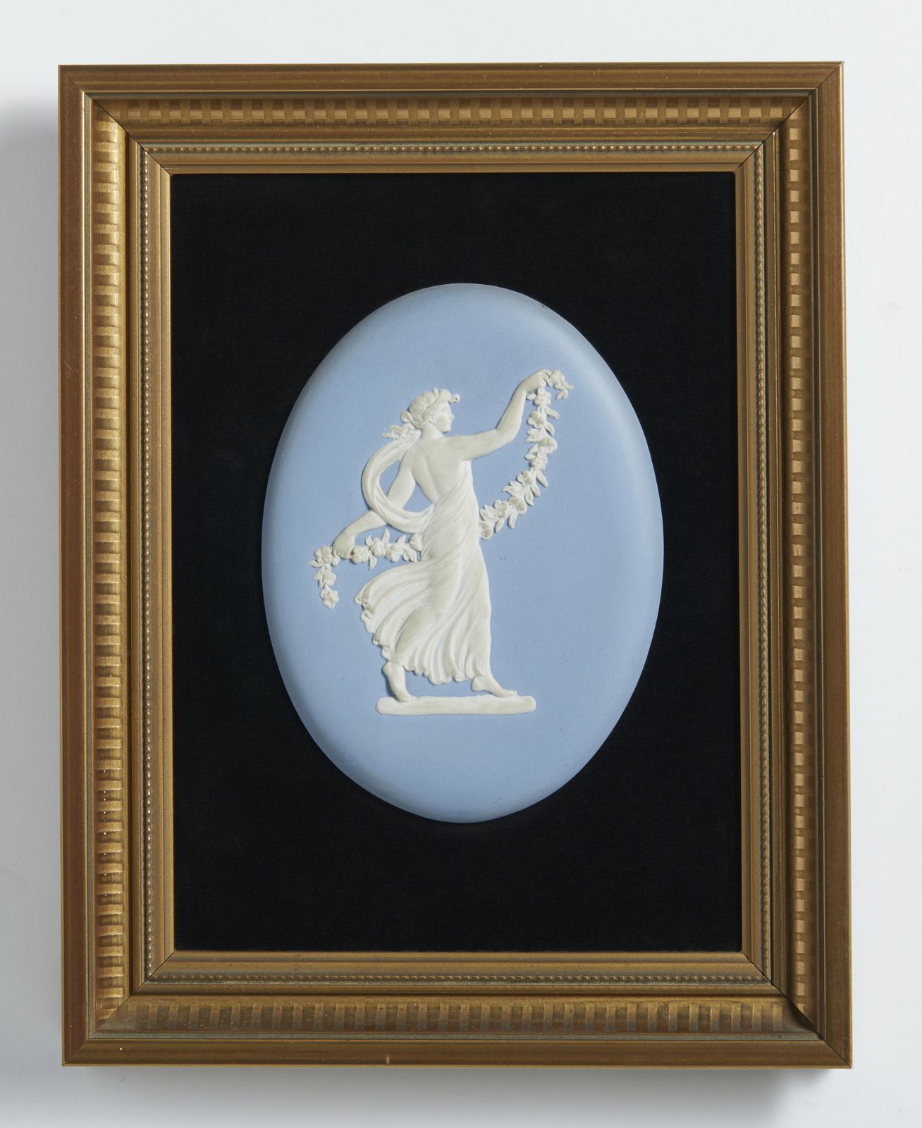 Ovale in ceramica azzurra e bianca raffigurante Flora